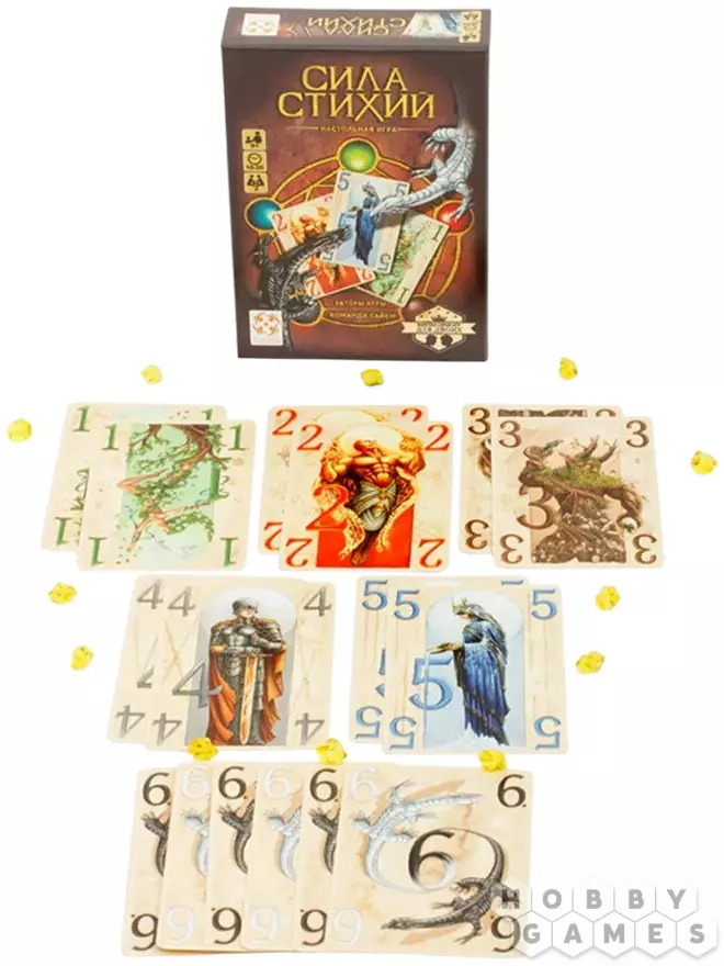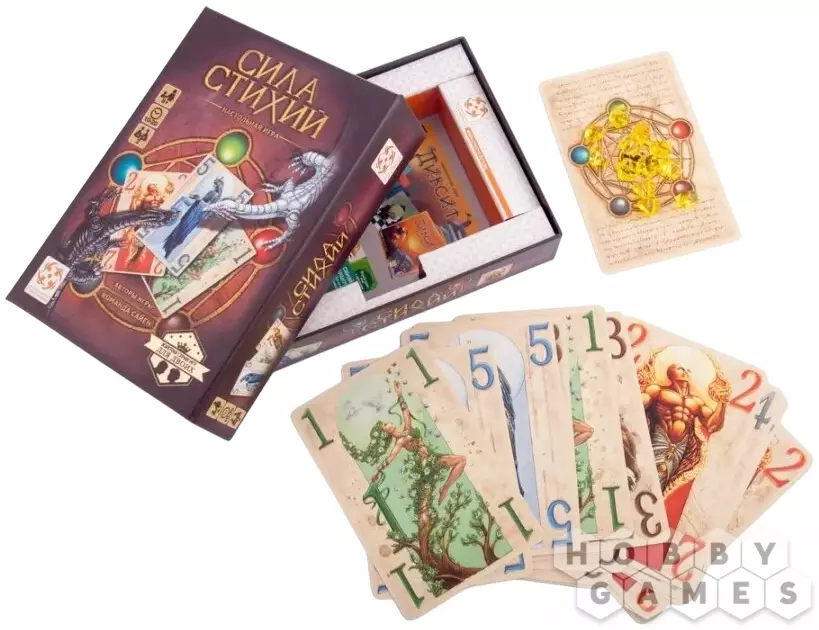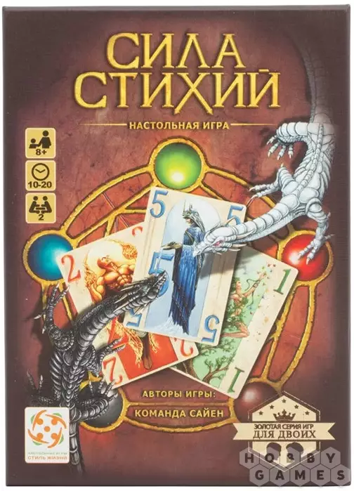 "Сила стихий" – это быстрая и изящная стратегия для двоих, где каждое решение меняет баланс. В основе – классический круговорот пяти элементов, дополненный дуальностью Инь и Ян. В начале раунда вы получаете 6 карт из 12, остальные образуют лимит – общий резерв. Ваша цель – избавиться от карт Инь и Ян, но вот загвоздка: остальные стихии нельзя просто сбросить! Их можно либо оставить у себя (рискуя набрать лишние очки), либо отправить в лимит (но тогда его размер не должен превысить 5 карт к концу раунда). Игра длится до трёх победных раундов, а её красота – в простоте правил и глубине тактических возможностей.