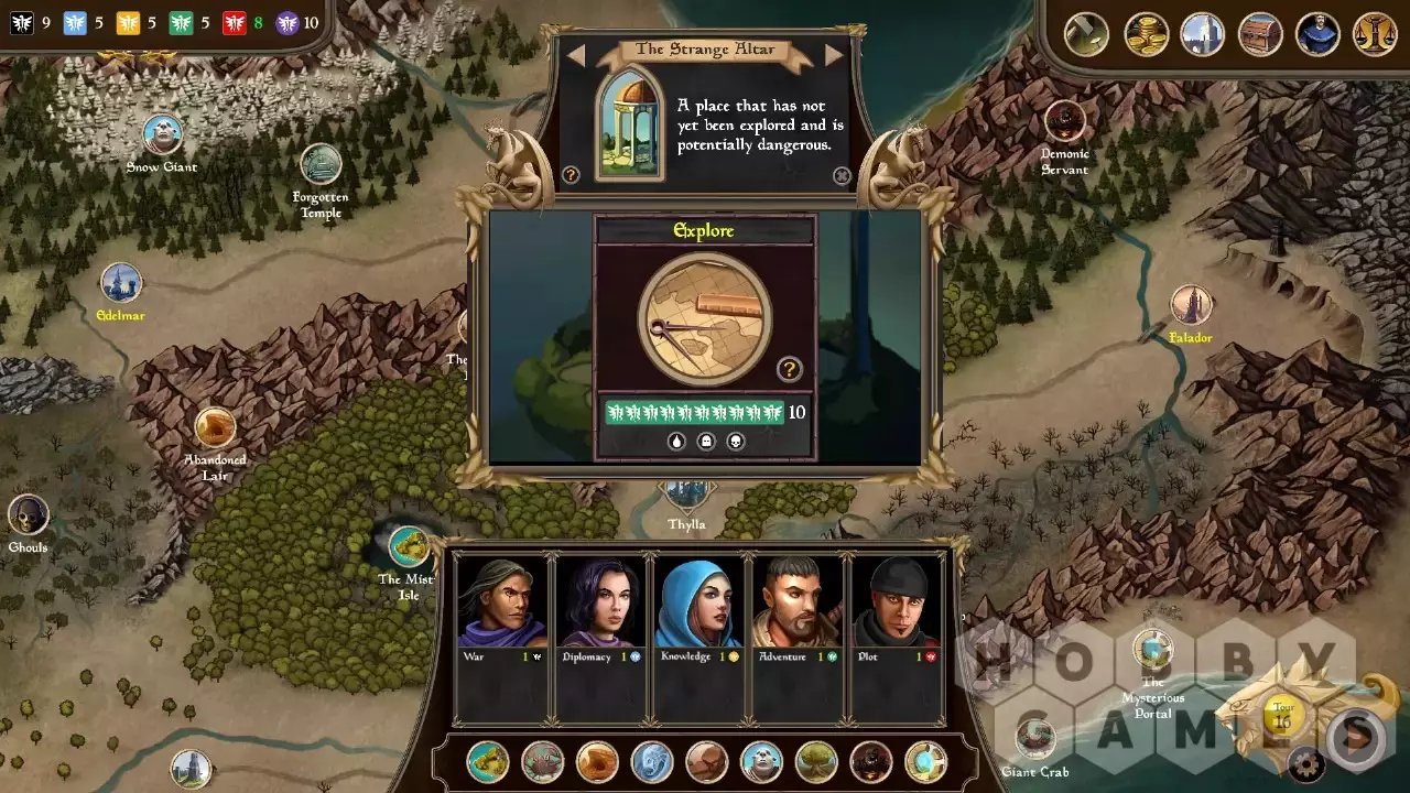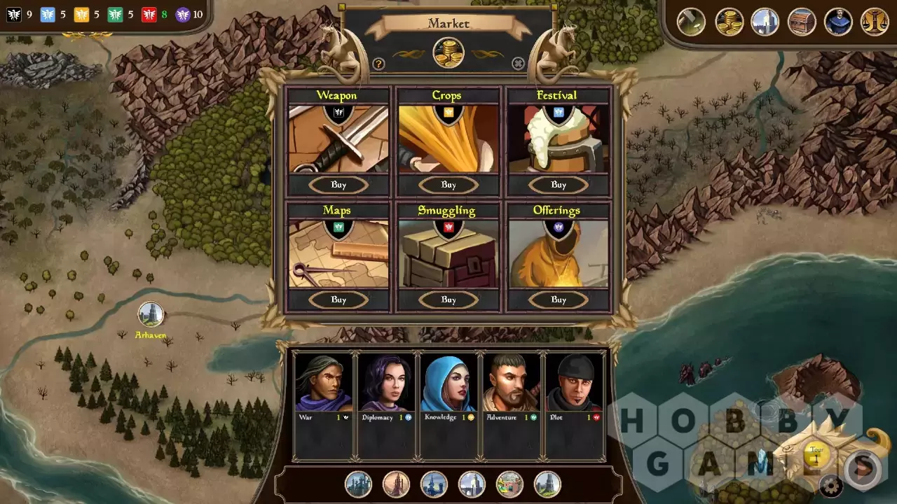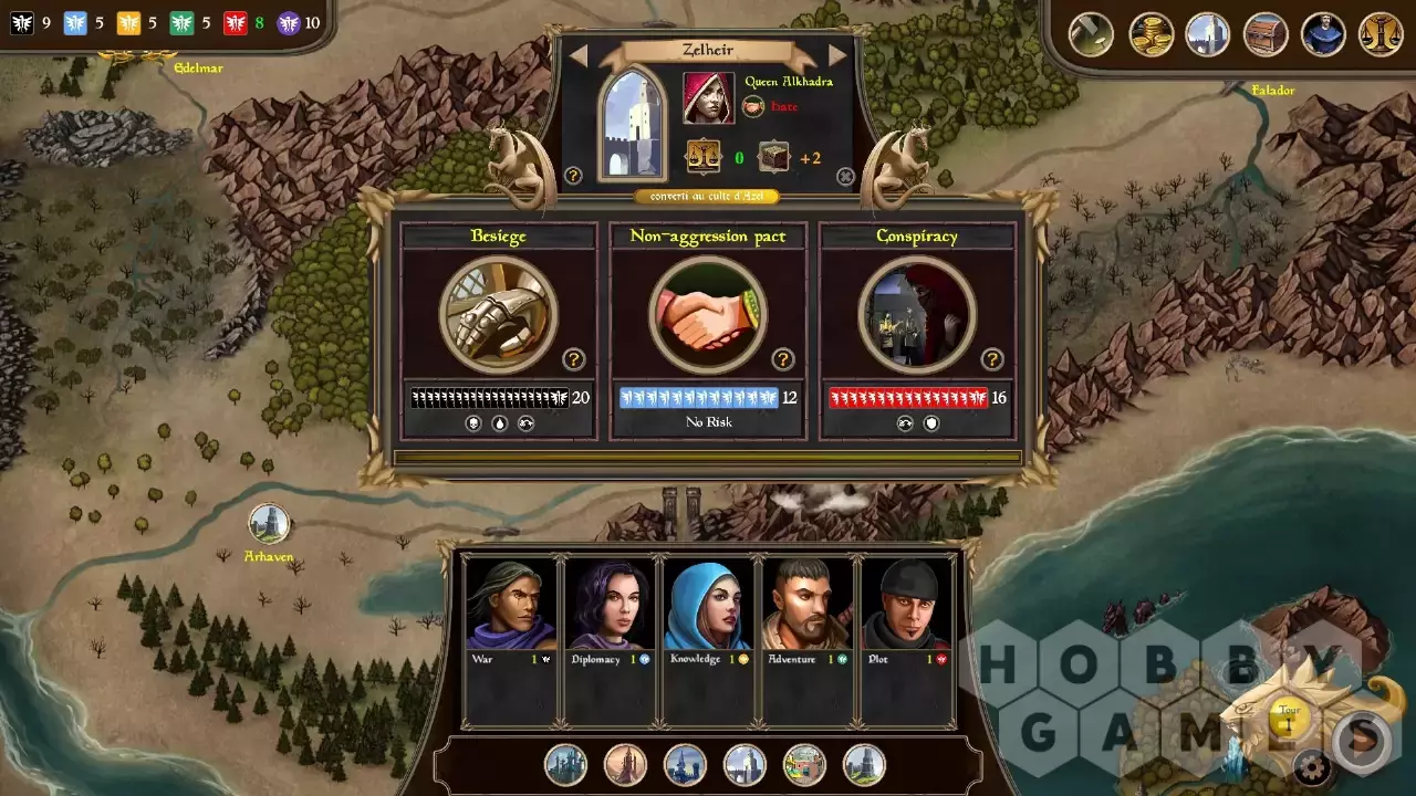 Choose and use your advisors wisely to gain action dice that you’ll use to wage war or form alliances, develop trade and explore the world, or spy on your enemies and conspire to overthrow the other rulers!