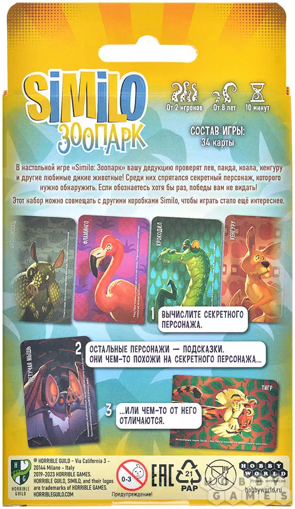 "Similo: Зоопарк" – это кооперативная игра, в ней вам нужно действовать совместно – вместе же вы выиграете или проиграете. Вы победите, когда на столе не останется ни одной карты, кроме секретной. Но если вы решите выкинуть её – вам тут же засчитается поражение.