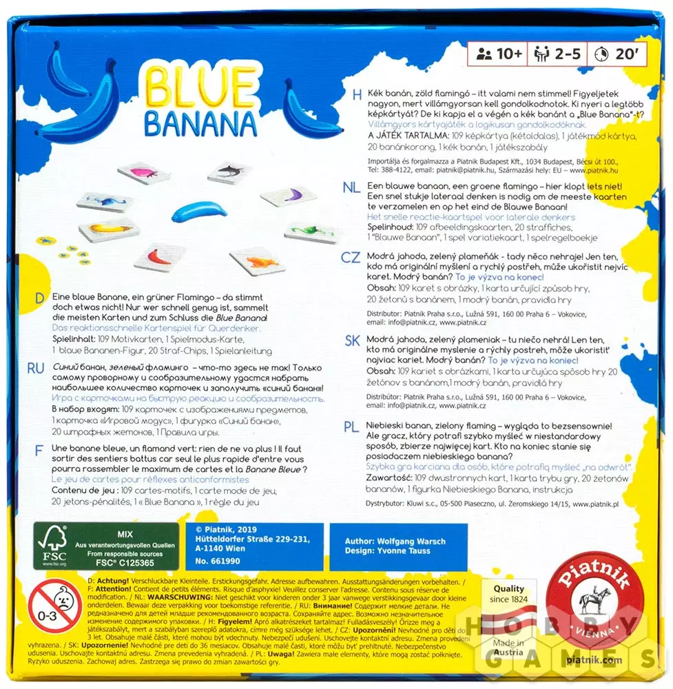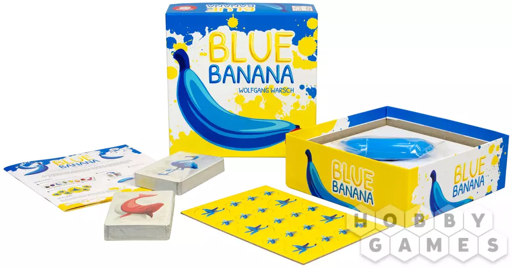 Быстрая карточная игра "Голубой Банан" / Blue Banana. Постоянная смена цветов и символов может по-настоящему запутать. В центр стола кладутся карты с основным мотивом на этот раунд, но выполненные в неверных цветах. Взять, к примеру, тот же банан: всем известно, что банан... синий? Нет, конечно, настоящий банан жёлтый, и вам придётся искать карточки, которые в действительности должны были быть нарисованы жёлтым. Вроде бы просто, но игра на скорость и вам придётся соображать не просто быстро, а быстрее других игроков! Если нужных карточек нет, то на помощь снова придёт синий банан, но на этот раз пластиковый, если вы не ошиблись и действительно комбинаций больше нет, то раунд завершается и подсчитываются карточки на руках игроков. Кто больше собрал – побеждает!