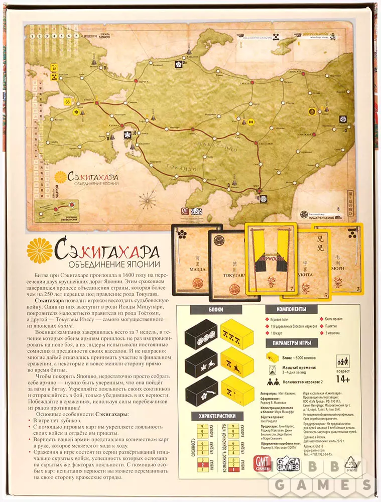"Сэкигахара" – одна из самых популярных военных настольных игр, в которой два игрока будут меряться тактическими и стратегическими навыками. Цель игрока – одолеть вражеского военачальника, чтобы закрепить своё право на власть. Игра отличается наличием механики "тумана войны": все войска в "Сэкигахаре" представлены блоками и располагаются таким образом, что лишь игрок, контролирующий их, знает, где какие боевые единицы располагаются. Противник может представить лишь примерную численность войска оппонента – а потому открывается невероятный простор для планирования и блефа. Чтобы победить, придётся задействовать всё своё военное мастерство: грамотно перемещать войска и оценивать обстановку, формировать наиболее эффективные войска и даже переманивать вражеских вассалов на свою сторону!