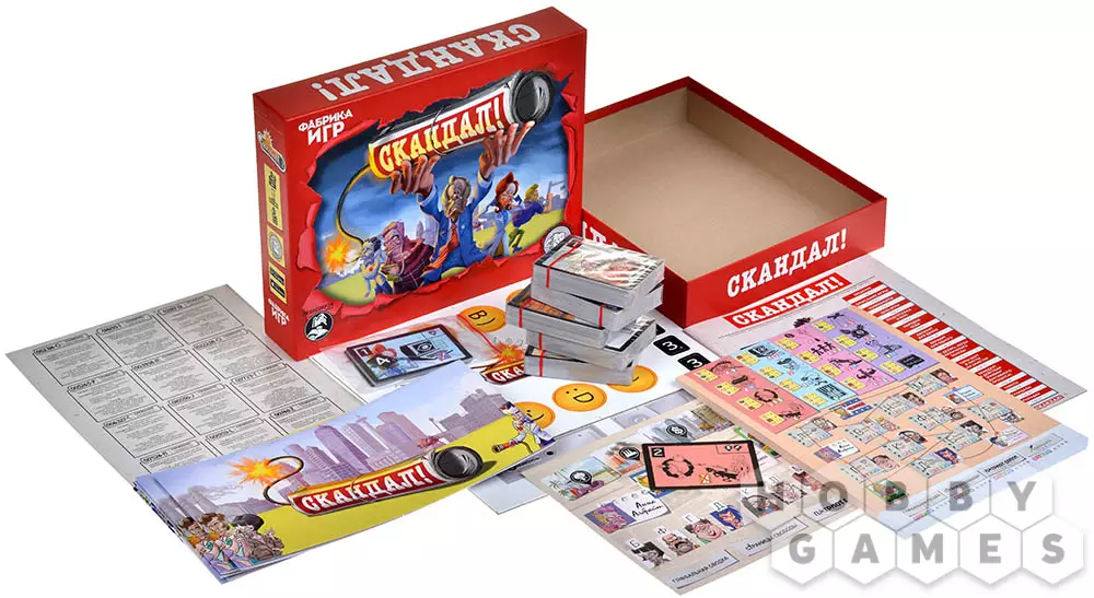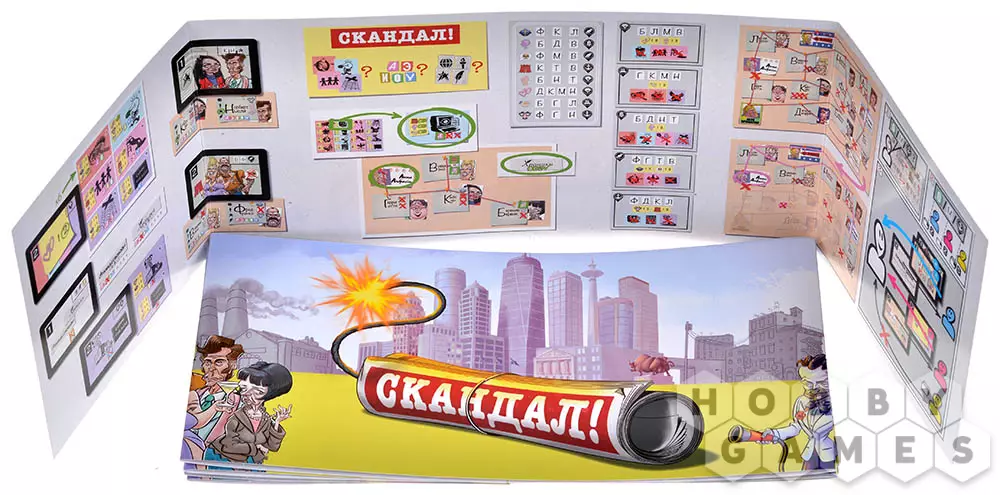 Приготовьтесь принять участие в журналистском расследовании в настольной карточной игре "Скандал"! Каждая новая игра предлагает абсолютно уникальные задачи, что достигается при помощи уникальной системы гениальной колоды: она обеспечивает множество сюжетов разных уровней сложности. Вы будете искать информацию о предстоящем деле, а чтобы из него получилась громкая сенсация, придётся задействовать дедукцию и логику.