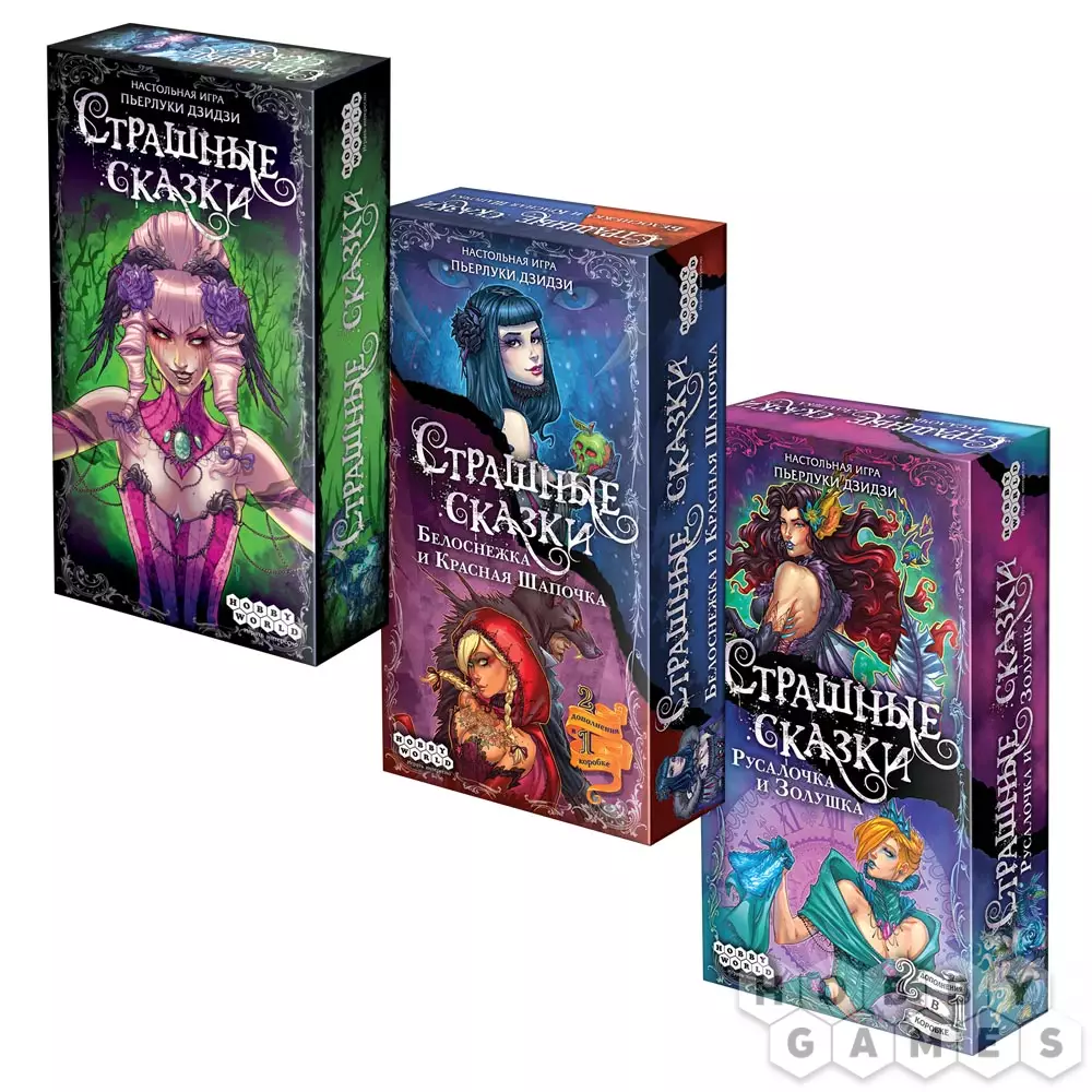 "Страшные сказки: Белоснежка и Красная Шапочка" – это набор из целых двух дополнений для базовой игры, в которой, используя различные карты, вы придумывали свою собственную сказку. Теперь вы можете выбрать любое из них и замешать с базовой колодой. Длительность партии при этом немного увеличится, но, при желании, вы можете уменьшить количество базовых карт. С дополнениями у вас появляются новые персонажи, сюжетные карты, предметы и механики, так что сочинять сказку будет ещё интереснее!
