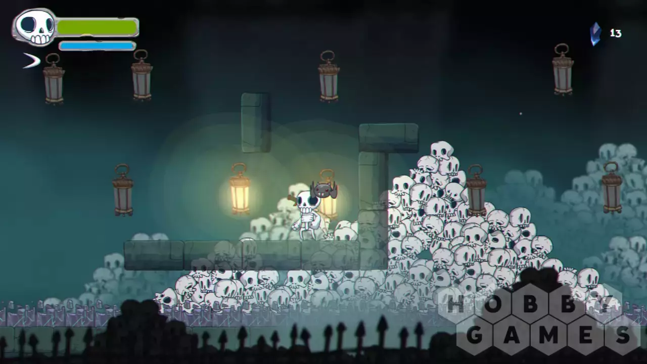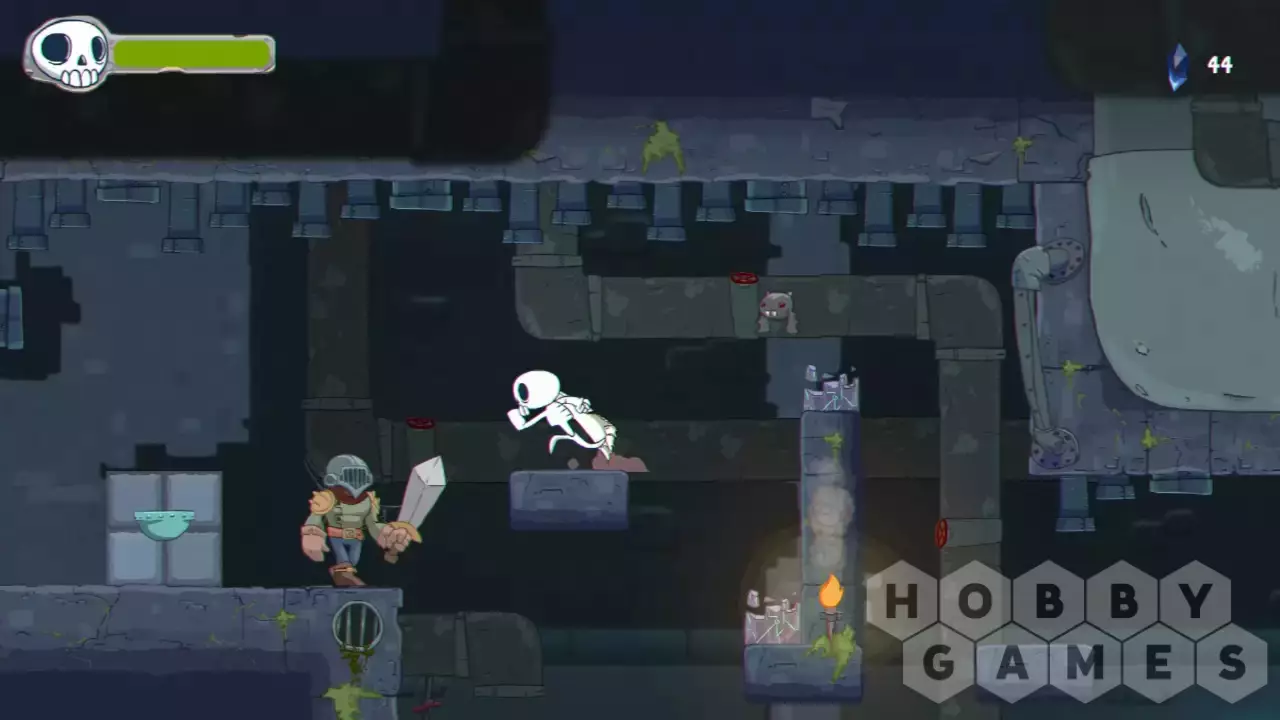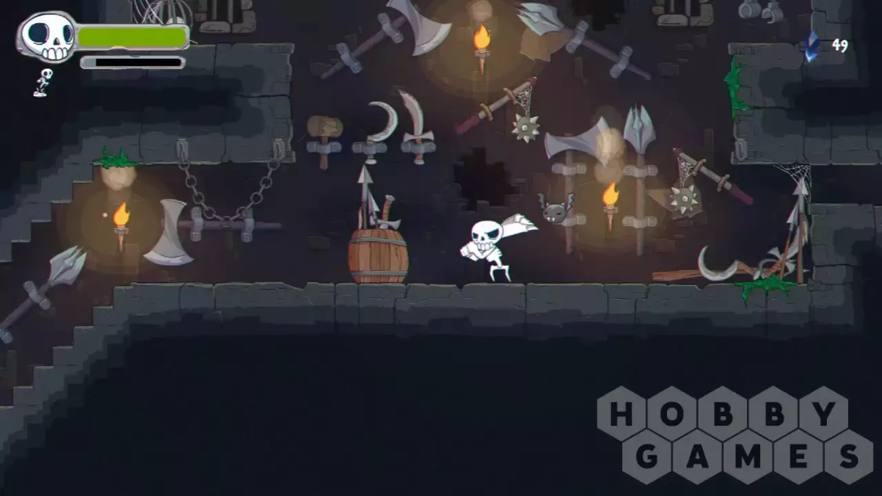 You are Skully, member of the newly deceased and just when you start to get the hang of being dead, your newfound home and friends are attacked by humans. Instead of seeking gold or other treasure, they kidnap Aftervale's elder skeleton Elzedon and then go after the magic that kindles the spirits of the dead: the Blue Flame. Together with your best bat friend Imber, you have to jump, slash, and flap your way though the Underworld and stop the human threat!