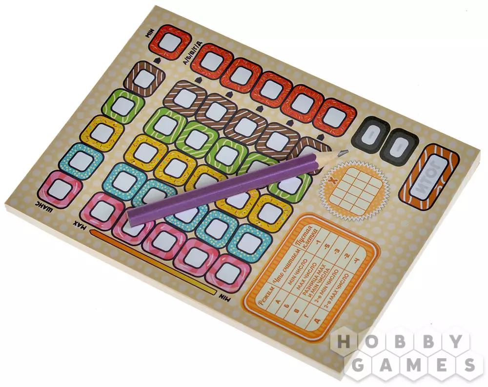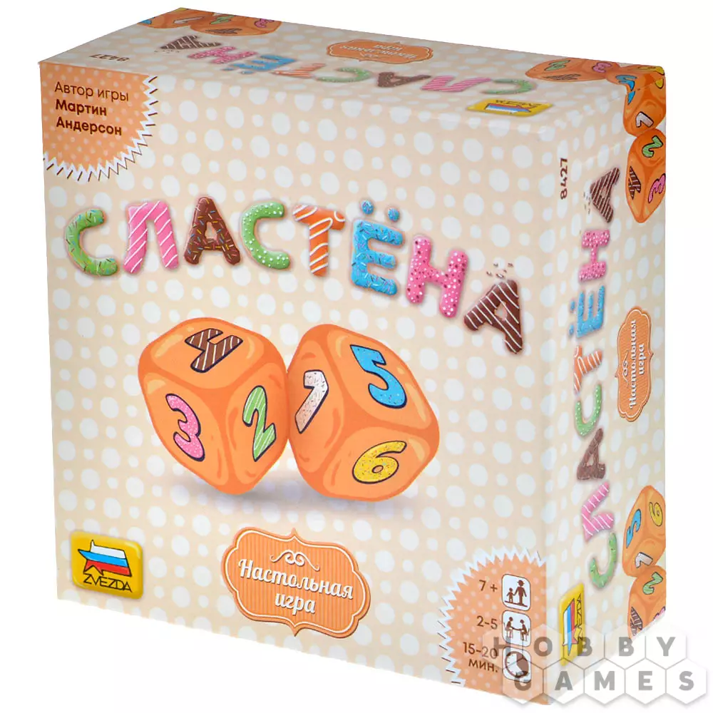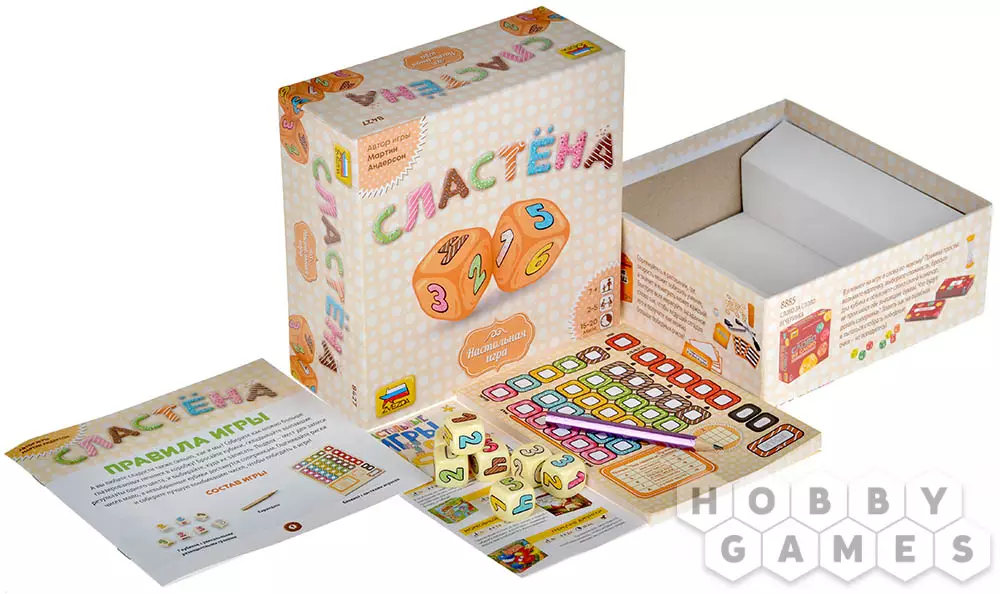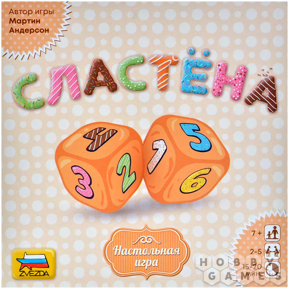 Эта настолка похожа на всём известную игру “Лото”, только с кубиками! После броска сложите все выпавшие цифры одного цвета. И теперь самое сложное: решите, какое из окошек на вашем листочке его записать. Подвох в том, что мест для числ ну очень мало, а невыбранные кубики переходят к соперникам. Постарайся собирать наилучшие комбинации, чтобы стать победителем "Сластёны"!
