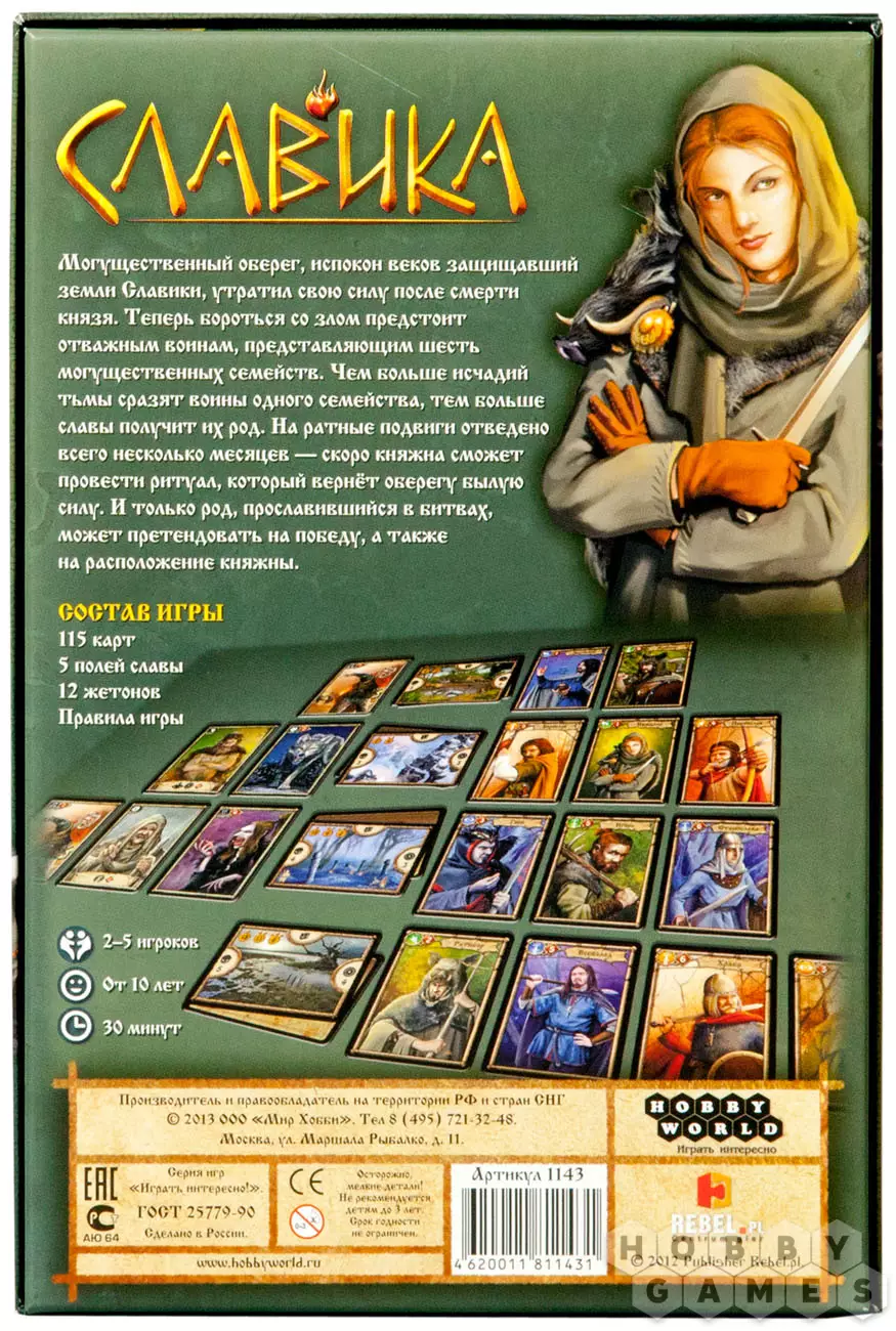Настольная игра «Славика» погружает игроков в забытый мир славянских мифов. Любителям и почитателям истории нашей страны ранних этапов эта игра должна прийтись по вкусу. Игра интересна тем, что здесь отсутствует так иногда расстраивающий фактор случайности, все зависит только от дальновидных действий игрока. Прекрасная игра для великолепного вечера в компании друзей!