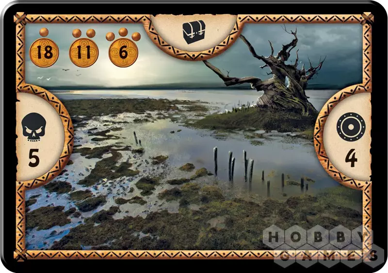 Герои вершат свои подвиги несколько месяцев – до тех пор, пока молодая княжна не сможет совершить ритуал по восстановлению силы оберега. Время игры измеряется выходящими месяцами, а те прячутся в сундуках с трофеями. Открыв такой сундук, вы можете получить как карточку с победными очками (2, 3 или 4), так и карточку месяца. Игра продолжается до выхода четырех таких карт (из пяти в колоде). Многих, пожалуй, может удивить столь коварное поведение времени. Этим людям, я думаю, стоит напомнить о том как время ведет себя в пятничный вечер, когда, казалось бы, только наклонился к кувшину вина – а уже понедельник и пора на работу.