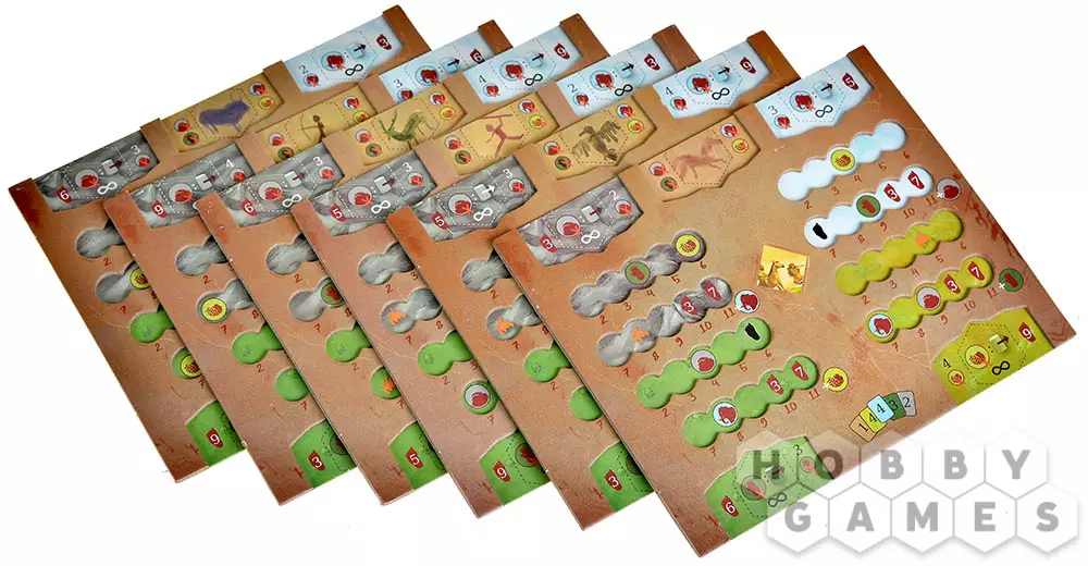 У каждого из вас на руках будут карты клана. Ваша задача – заработать максимально большое количество победных очков и добраться до конечной точки. Чтобы получать очки, вы будете каждый ход разыгрывать одну из своих карт, продвигаясь по полю и улучшая свои ресурсы, навыки и способности. А ещё не забывайте о наскальных рисунках и дополнительных целях, ведь они тоже могут помочь вам вырваться вперёд. Сможете ли вы пережить потоп и оставить своё послание потомкам?