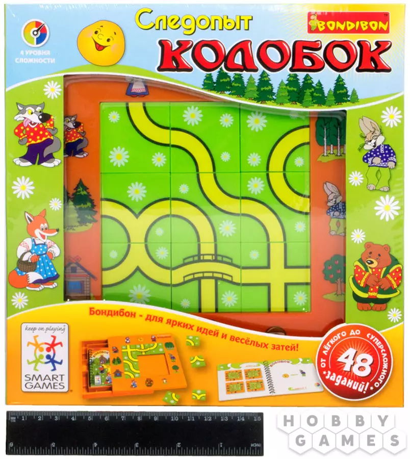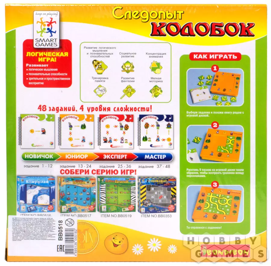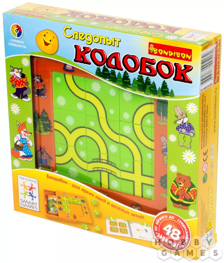 Эта забавная настольная логическая игра хороша новой встречей с любимыми героями. Колобок - одна из тех старинных русских сказок, которые первыми читают ребенку. А рассказывает она о том, как бабка испекла деду мучной пончик - колобок, а тот ожил, да и сбежал, но участи быть съеденным не избежал. Помните, в странствиях Колобка ему встречаются Заяц, Медведь, Волк, Лиса? В нашей настольной игре "Колобок Следопыт" мы пофантазируем и представим, что дороги могли пересечься не в том порядке, и отношения между героями могли сложиться по-другому, да и финал сказки мог стать совсем другим. Как думаешь, может они могли бы подружиться? Создавай свою историю, помоги любимому сказочному персонажу найти верную дорогу среди множества путей в этой интересной логической игре! Расставь 9 пазлов на игровой доске, проведя извилистую тропинку между персонажами, указанными в задании на карточке. Следи за дорогой, чтобы не зайти в тупик! 48 различных заданий, сотни вариантов их решения - эта увлекательная игра понравится абсолютно всем! Настольная игра "Следопыт Колобок" - отличное средство для досуга как детей, так и взрослых.