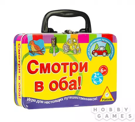 Не забудьте взять в поездку с детьми все необходимые вещи, особенно чемоданчик с игрой "Смотри в оба". Когда устанете наблюдать за однотипными пейзажами за окном поезда или начнёте засыпать за рулём автомобиля, срочно открывайте чудо-ящичек! Там вы найдёте карты с изображениями дорожных знаков и объектов, которые могут встретиться из окон транспорта.