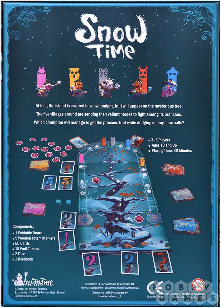 В настольной игре Snow Time вам предстоит выступить в роли детей, представляющих свою деревню на необычном соревновании: вы собираетесь возле необычной ёлки, на которой растут чудо-фрукты! Ваша задача – собрать как можно больше фруктов и одержать победу над другими игроками.