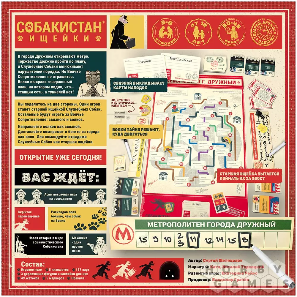 Окунитесь в напряжённую атмосферу тайного противостояния в альтернативном мире Собакистана! Эта асимметричная игра предлагает вам почувствовать себя частью детективного триллера, где от вашей хитрости и предчувствия зависит успех всей операции. Одному игроку предстоит мыслить как старшая ищейка, опираясь на логику и чутьё, чтобы раскрыть заговор, в то время как команда волков будет действовать в тени, используя скрытые сигналы и блеф.