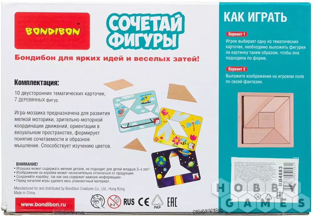 Головоломка "Сочетай фигуры" – это танграм с заданиями, в комплекте присутствует 10 карточек с 20 заданиями по сборке различных фигур. Задания отличаются друг от друга по уровню сложности. Игра-головоломка помогает ребёнку развивать мелкую моторику, образное и логическое мышление, а ещё формирует понятие сочетаемости предметов.