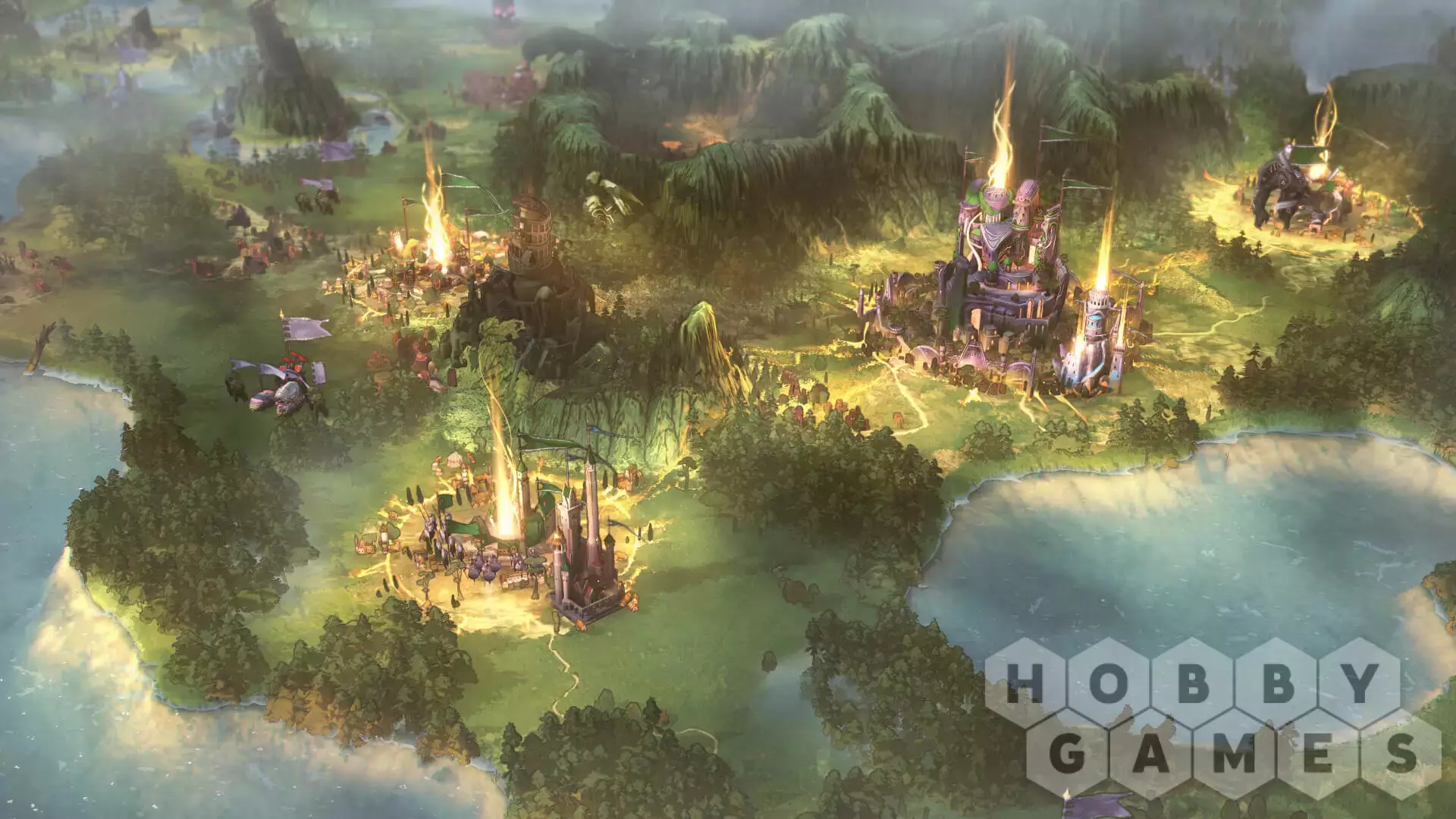 - Яркий дизайн мира – Исследуйте 22 уникальных локации в разных биомах, каждая из которых предлагает стратегические преимущества, такие как бонусы ресурсов, лечение отрядов и видимость тумана войны.