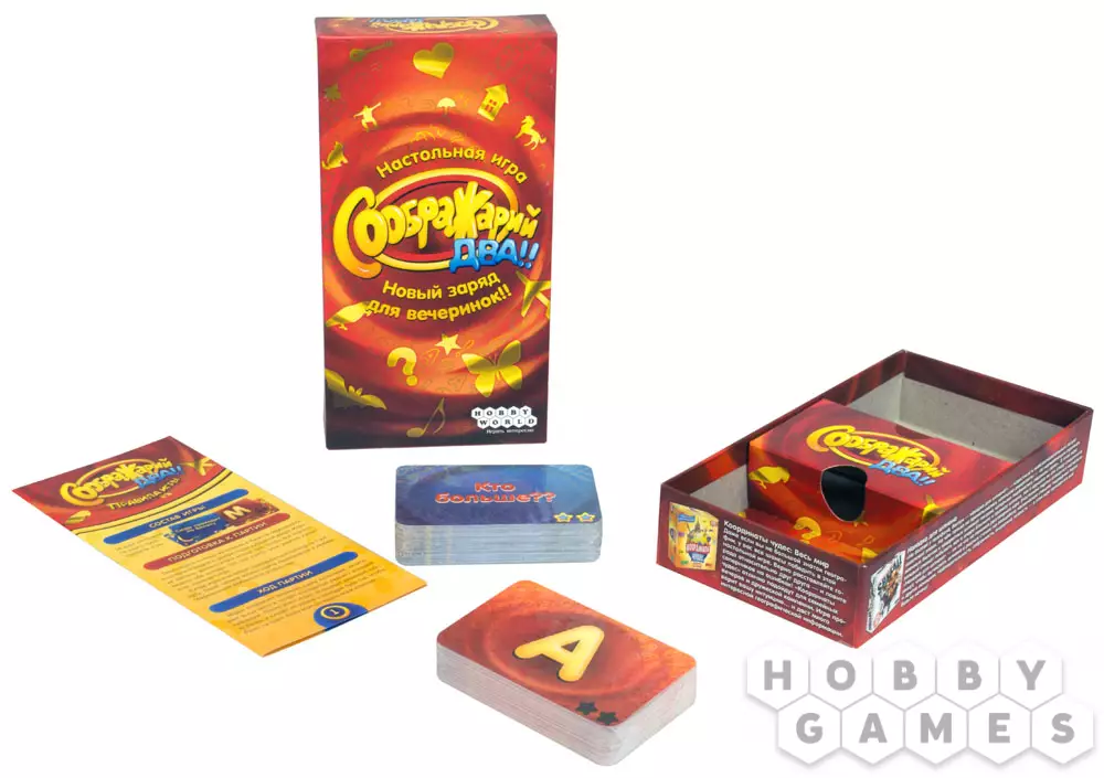 "Соображарий Два!!" – это новая самостоятельная часть знаменитой компанейской игры, скрасившей множество вечеров для игроков по всему миру. Игра предлагает новые, яркие и интересные задания, которые заставят призадуматься… буквально на секунду, чтобы как можно скорее дать правильный ответ!