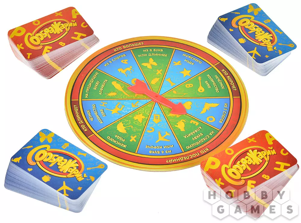 В этом издании вас ждёт уникальный игровой элемент – специальная вертушка, которая вносит разнообразие и добавляет особые условия для ответов. Выбирайте, с какой колодой играть: классической – с буквами, или более креативной – с картинками, которые нужно определить самостоятельно. Вас ждут сотни карт из хитов серии: "Соображарий", "Улётная вечеринка", "Картинки", "Турбо", "Каникулы", а также эксклюзивные карты из других тематических выпусков и множество совершенно новых заданий!