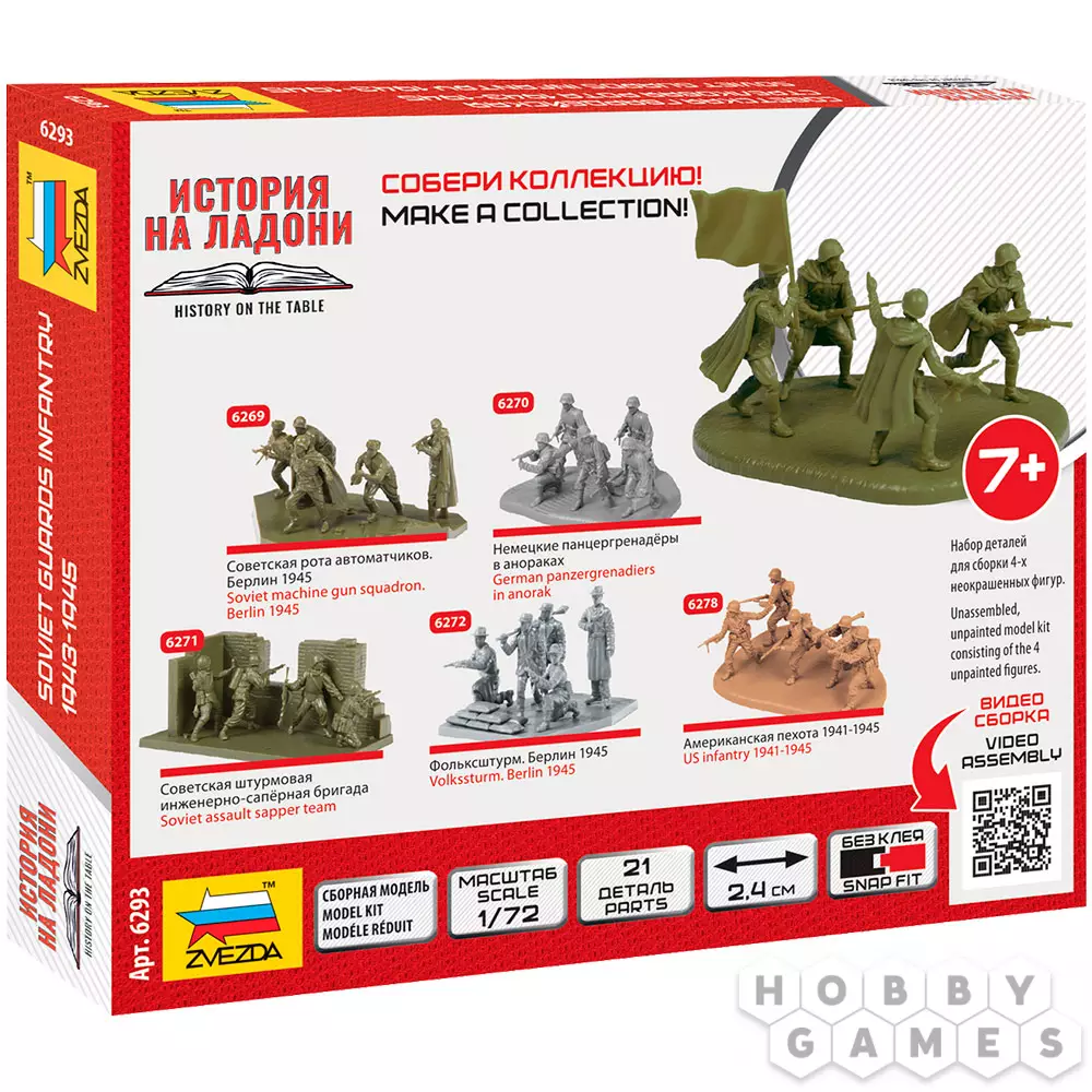 Благодаря этому набору вы получите детализированные фигурки бойцов с характерным вооружением и снаряжением того периода. Он подойдёт коллекционерам, моделистам и любителям военной истории и позволит воссоздать сцены сражений 1943-1945 годов.