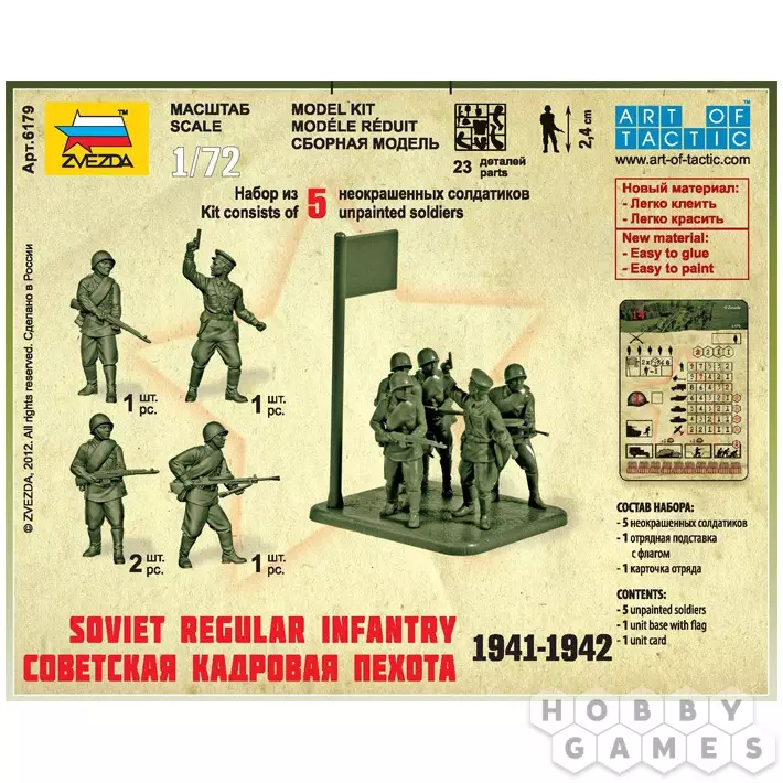 Вы можете использовать миниатюры из этого набора в игровой системе Art of Tactic. Кадровая пехота – основа армии Красной армии, обладающая хорошей моралью и достойной атакующей силой. Однако ей свойственен недостаток перед лицом бронетехники.