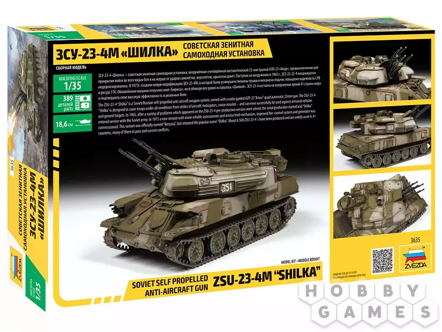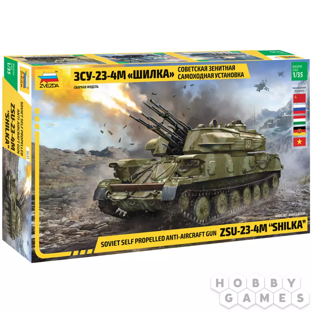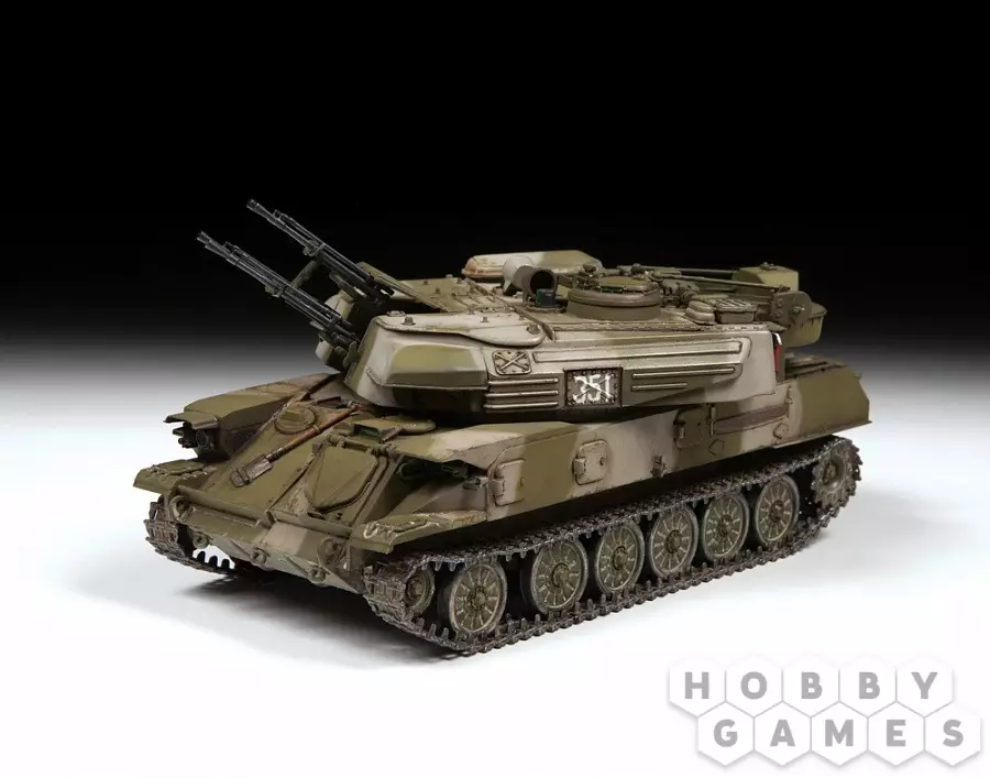 ЗСУ-23-4 "Шилка" – советская зенитная самоходная установка, оснащённая четырьмя скорострельными 23-мм пушками АЗП-23 "Амур". Она была создана для защиты войск от атак с воздуха, включая самолёты, вертолёты и крылатые ракеты, как во время активных боевых действий, так и при передвижении на марше.