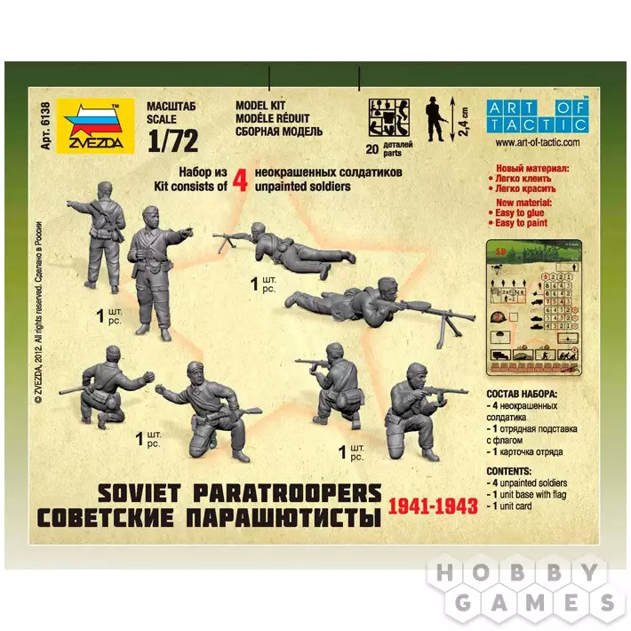 Вы можете использовать миниатюры из этого набора в игровой системе Art of Tactic. Десантники обладают возможностью вести разведку, совершать диверсии и устраивать засады, а также эффективно сражаться в пехотном строю. Отличный выбор для коллекционеров, моделистов и поклонников военной истории, стремящихся пополнить свою коллекцию одной из самых мобильных и смелых частей Красной армии.