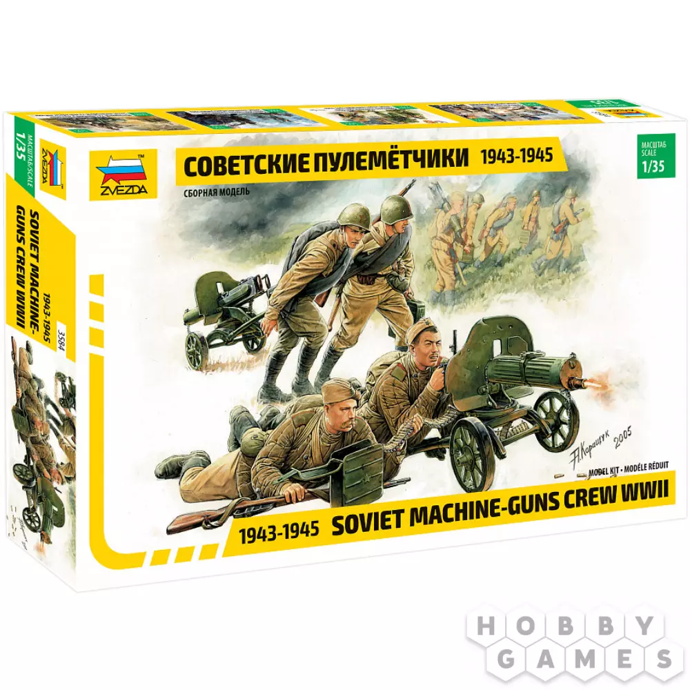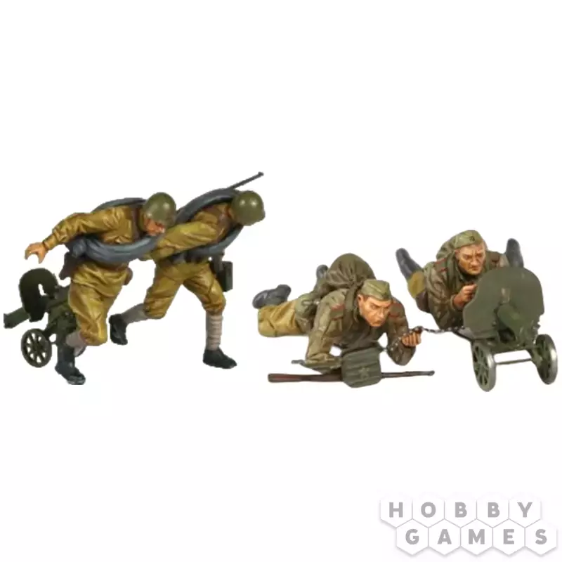 Создайте детализированную композицию с советскими пулемётчиками времён Великой Отечественной войны. Набор содержит две модификации знаменитого станкового пулемёта "Максим" и четыре фигурки солдат, выполняющих роль расчёта, что даёт возможность создать правдоподобную боевую сцену.