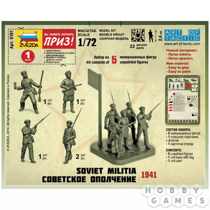 Вы можете использовать миниатюры из этого набора в игровой системе Art of Tactic. Ополченцы представлены как лёгкая пехота с низкими боевыми характеристиками и слабым вооружением, но обладающая всеми стандартными пехотными бонусами. Они уязвимы на открытой местности, но при грамотном применении могут сыграть значительную роль в оборонительных действиях.