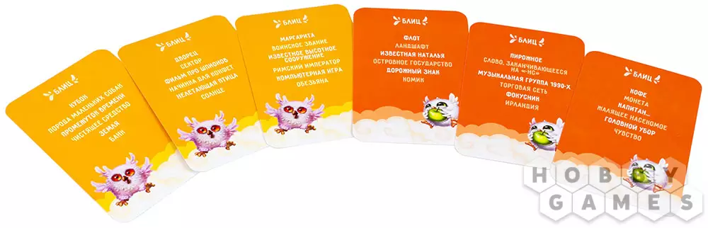 В фазу подготовки раздайте каждому игроку по листу из специального блокнота. Если листы закончились, вы всегда можете распечатать дополнительные из приложенного pdf-файла. Игрокам обязательно понадобится любое пишущее средство, которым они будут записывать ответы. Разделите карты на три стопки по типу ("Совы", "Жаворонки" и "Блиц"), а затем перемешайте каждую по отдельности. Случайным образом определите ведущего первого раунда и приступайте к игре!