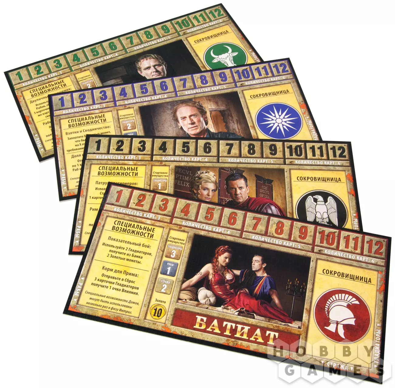 1. Можно разыгрывать все карты имеющиеся на руке. Рабов и гладиаторов, можно использовать в любой момент фазы интриг (если у них есть спец. способность).
