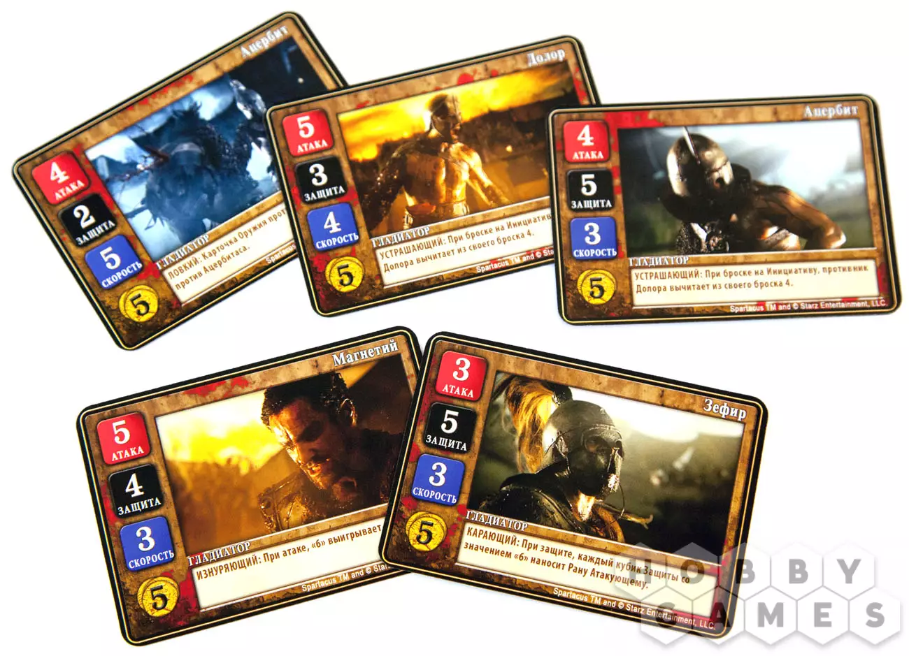 1) Ацербит. Гладиатор (4,2,5). Ловкий: Карточка Оружия противника не действует против Ацербитаса.