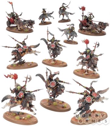 Модели в наборе предлагают различные варианты сборки. Для Sunsteala Wheelas доступны сменные колёса, сбруя, оружие и головы. Головы волков у Snarlpack Cavalry также взаимозаменяемы, а ещё вы сможете собрать до двух элитных всадников.