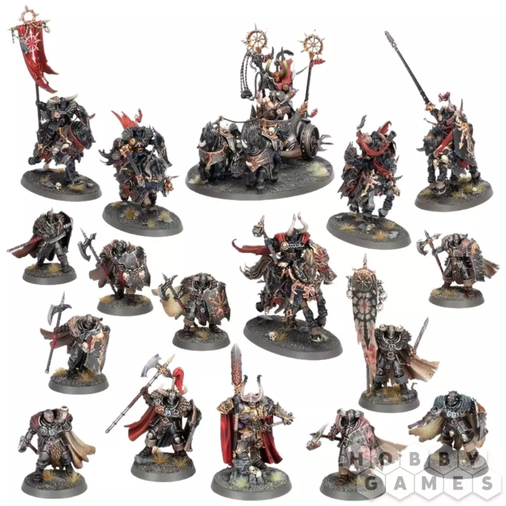 Эта коробка Авангарда поможет вам создать подходящую армию Рабов Тьмы, если вы собрались претендовать на Владения Смертных. Ну или просто для наращивания мощи существующей орды. В наборе вас ждёт могущественный Лорд Хаоса, который возглавит вашу армию, и целый бронированный строй, состоящий из могучих воинов Хаоса, стремительных рыцарей Хаоса и громоподобная Колесница Хаоса. Отправьтесь прямо на поле боя и прославьте Богов Хаоса!