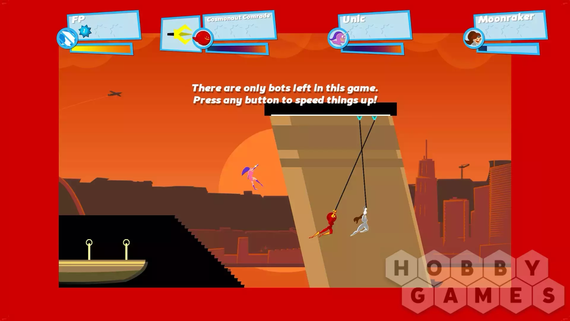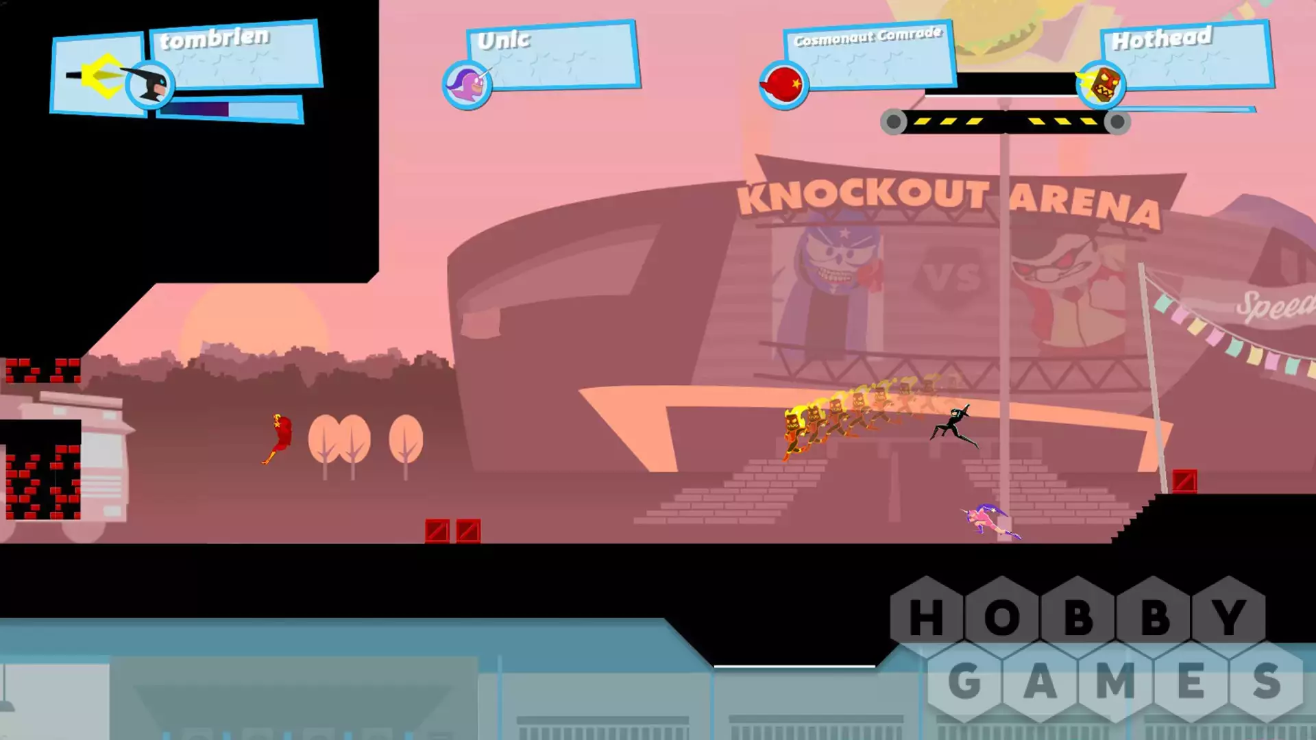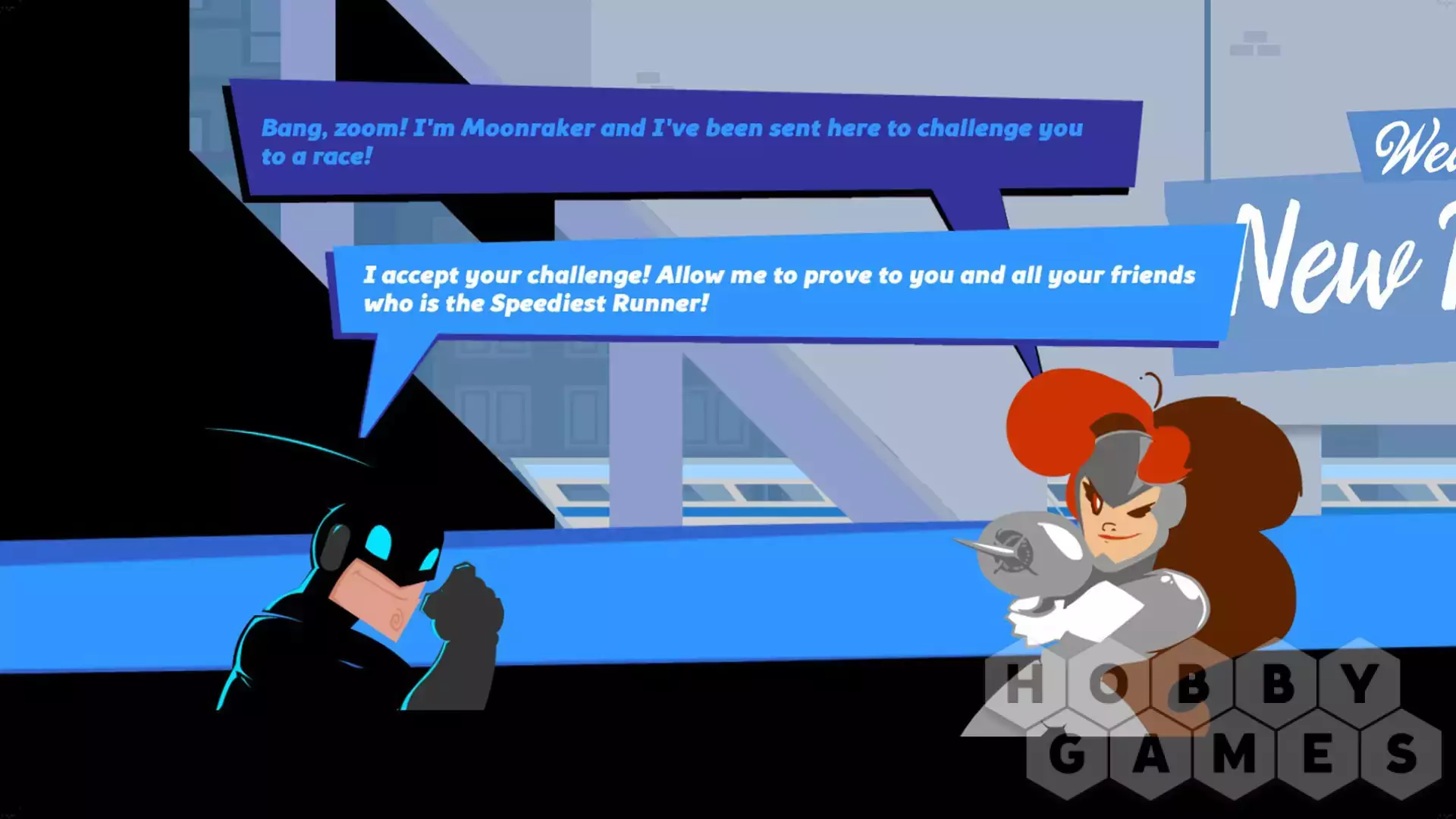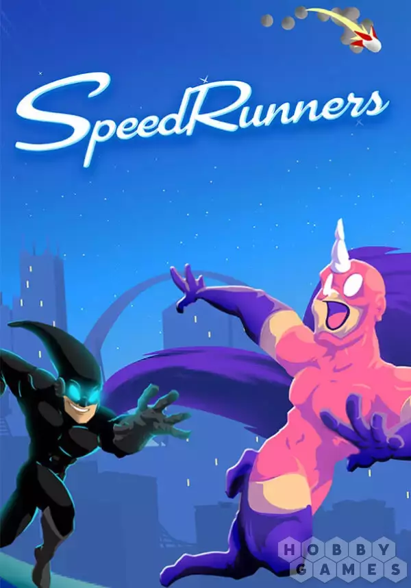 In a city filled with superheroes, getting to crimes becomes a competition on its own. Fortunately there are enough rockets, bombs, grappling hooks, spikes, and other goodies lying around -- to make the competition fun and fast. Welcome to SpeedRunners.