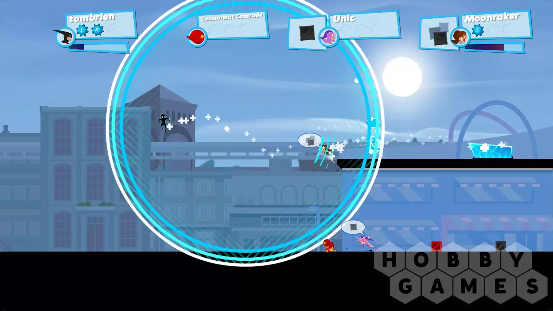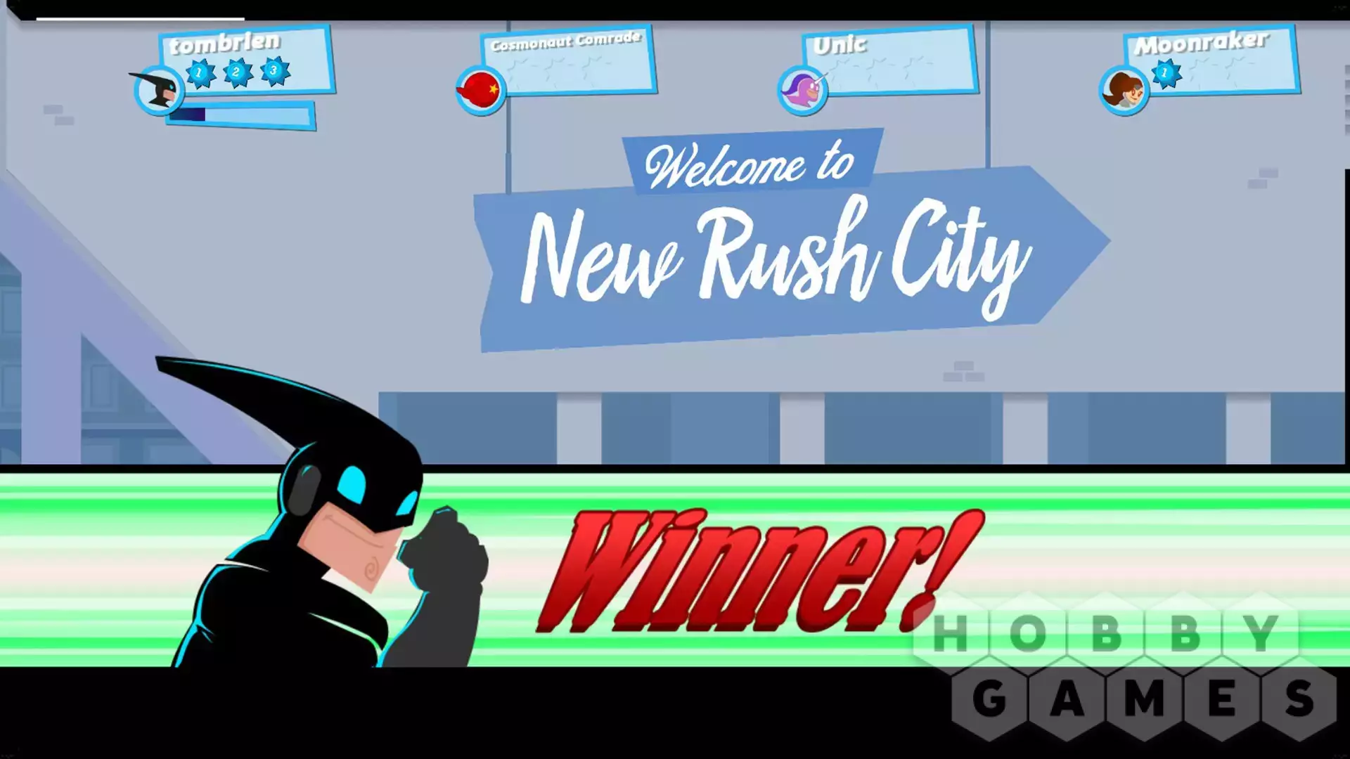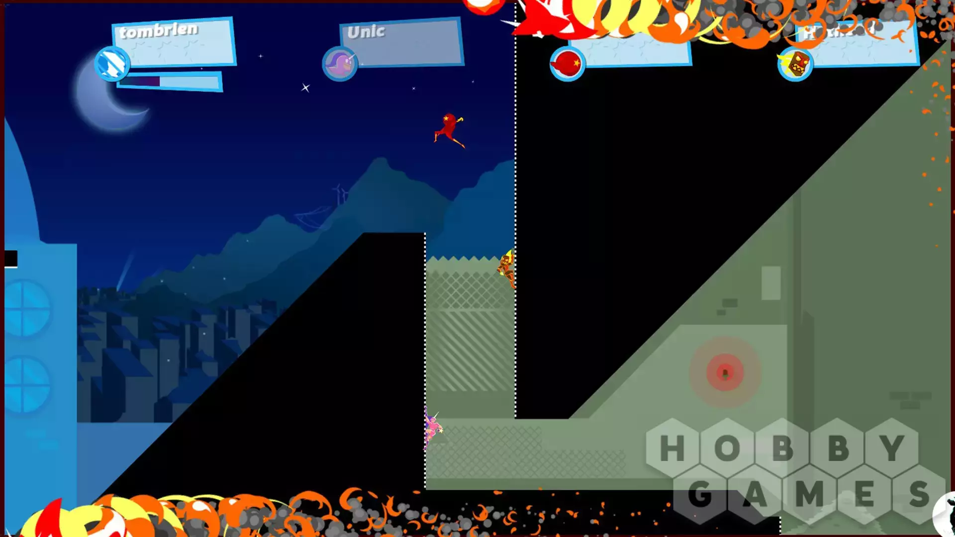 In a city filled with superheroes, getting to crimes becomes a competition on its own. Fortunately there are enough rockets, bombs, grappling hooks, spikes, and other goodies lying around -- to make the competition fun and fast. Welcome to SpeedRunners.
