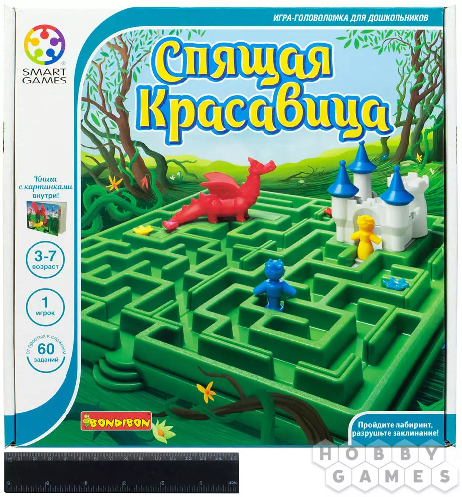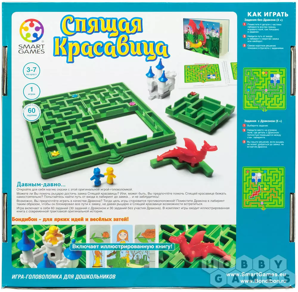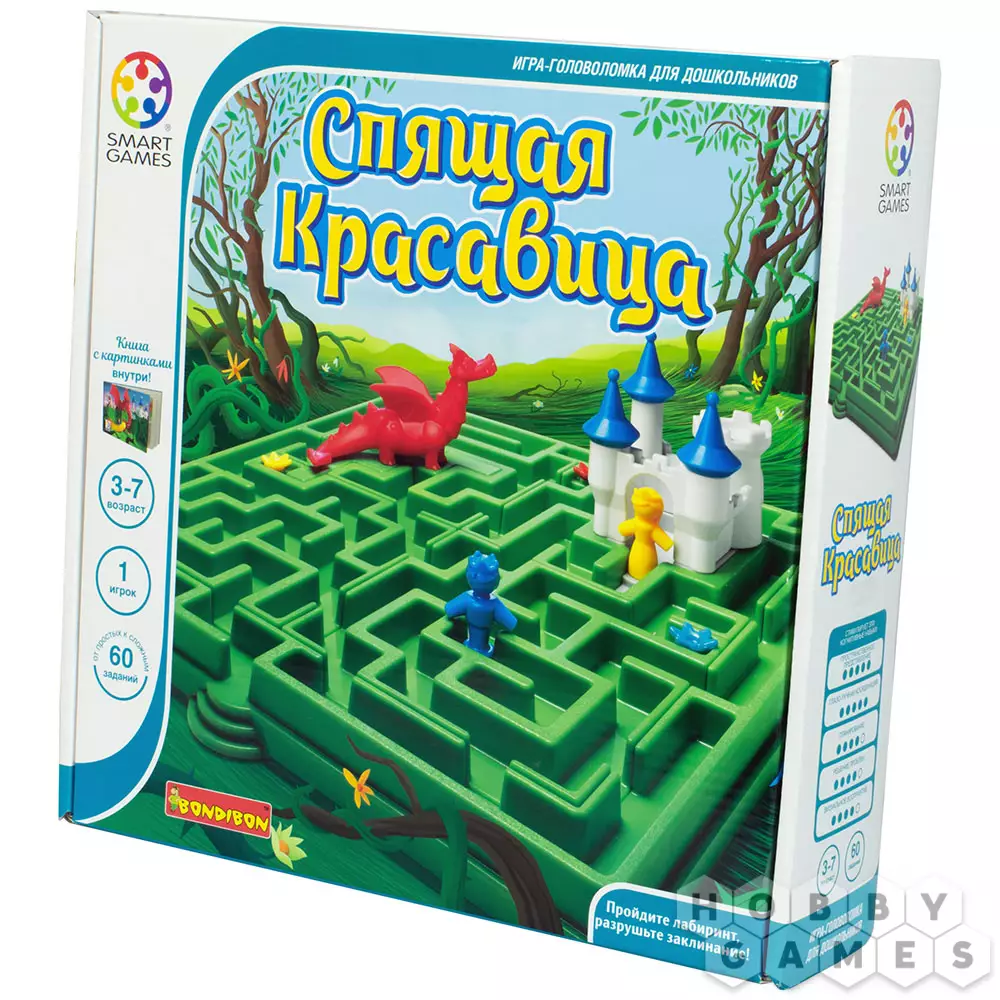 "Спящая красавица" – это игра-головоломка для детей от трёх лет от компании "Бондибон". В ней нужно продвинуть рыцаря по лабиринту до принцессы, миновав дракона – или же, в роли дракона, не дать рыцарю пройти. Для начинающих героев от трёх лет есть 30 заданий без дракона, для опытных рыцарей от пяти лет – ещё 30 заданий с драконом. Также в комплект входит иллюстрированная книга с сюжетом.