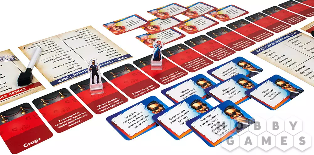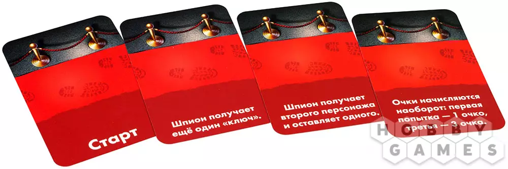 В начале из карт формируется поле со стартом и финишем. В дальнейшем, в зависимости от того, где стоит фишка вашей команды, могут быть активированы различные эффекты карт: вам могут дать больше попыток на отгадывание или наоборот, сократить их количество; могут дать на выбор одного из двух персонажей и т. д.