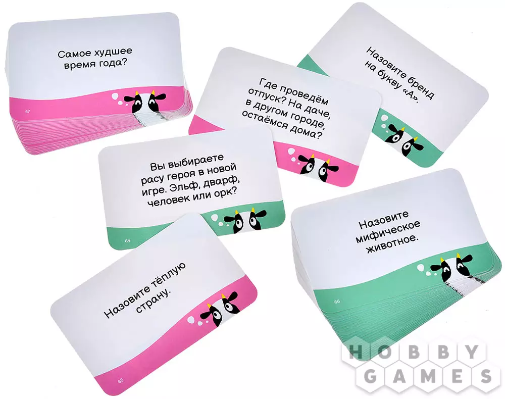 В начале игры выберите пастуха, или ведущего, – он будет зачитывать вопросы и, впоследствии, выдавать победные очки. Теперь каждый раз, когда пастух озвучивает вопрос, вы будете записывать в бланк ответов такой вариант ответа, который кажется вам наиболее распространённым и который с большей вероятностью выберут и другие игроки. В случае, если вам удалось смешаться с толпой, то есть если ваш вариант прозвучал у большинства, поздравляем – вы забираете себе жетон победных коров! Если вы оказались единственным, кто выбился и дал уникальный ответ, вы получаете в подружки розовую корову: эта гостья очень настырна и покинет вас лишь тогда, когда от стада отобьётся кто-то ещё. И сколько бы у вас ни было победных очков, пока в вашем стойле мычит это ворчливое создание, выиграть вы, увы, не сможете.