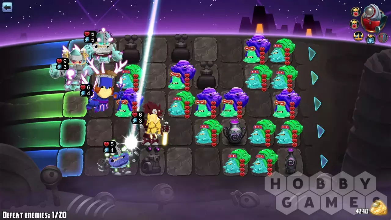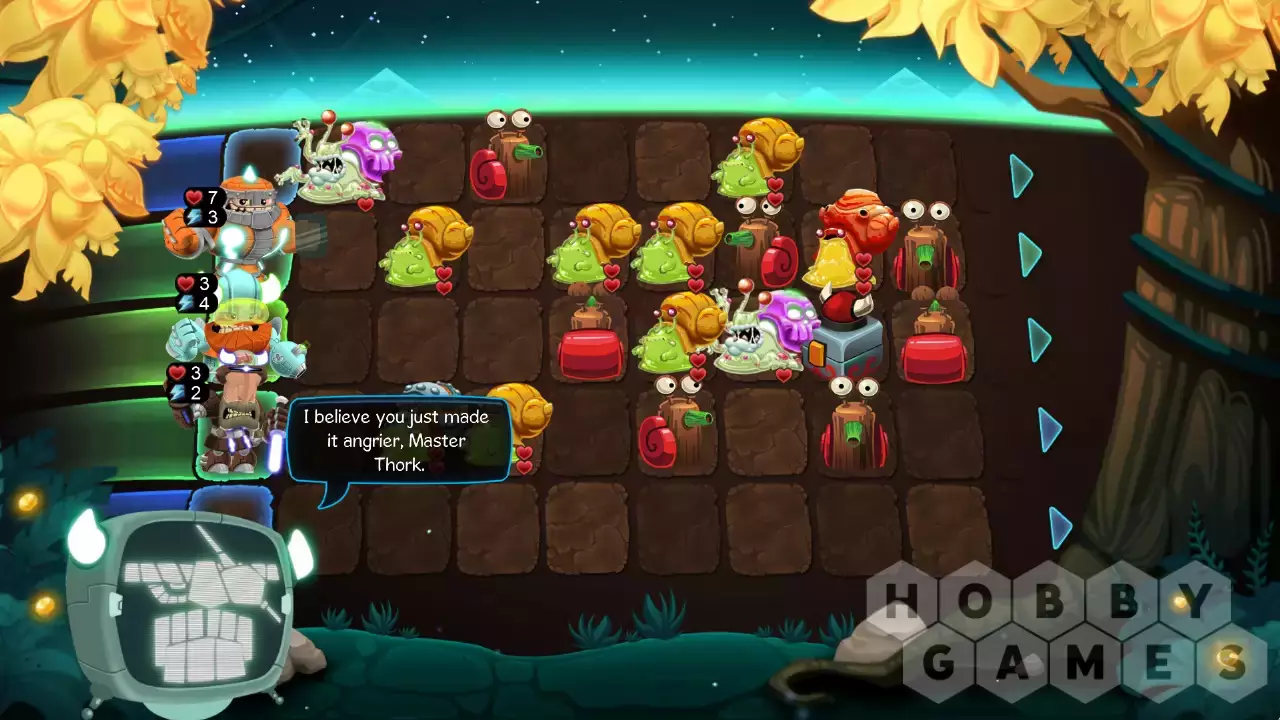 Здесь можно выжидать и мыслить стратегически, а можно ускорить битву и совершать несколько ходов одновременно. Головоломки генерируются случайным образом в ходе игры, так что всякий раз вас ожидают уникальные сложности. Каждый персонаж обладает и стандартными навыками ближнего боя, и особой атакующей способностью, от которой улитки в слезах уползут домой в свою ракушку. Эта способность уникальна для каждого класса, что создаёт дополнительный уровень стратегии в решении головоломок.