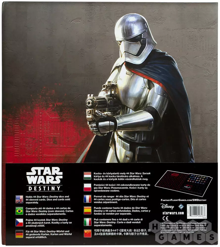 Увлечение коллекционной карточной игрой Star Wars: Destiny не проходит бесследно, количество ваших кубиков и карт неумолимо растёт. Подготавливаясь к партии, вы можете потратить значительное время на перебирания мешочка с кубиками. На помощь в экономии времени приходит Captain Phasma Dice Binder, который призван структурировать вашу коллекцию кубов. В аккуратном пластиковом органайзере помещается 44 кубика, а в отдельном отсеке помещается колода из 44 карт. Среди ровных рядов одно удовольствие искать кубики и применять необходимые из них в процессе игры!