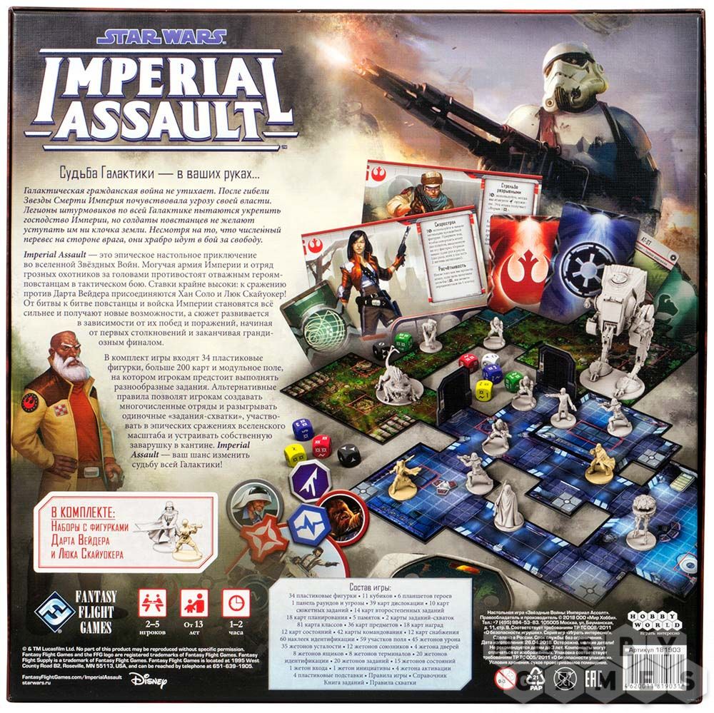 Соловьев28.10.2020 12:27Отличная игра, очень продуманная и лучше сделана чем descent, по идее звездные войны развивают идеи заложенные в предыдущей игре. Очень классно сделана компания и не линейно можно проходить, при прохождении компании вы точно увидите все сюжетные задания, но тут и куча второстепенных заданий которые вы точно все не увидите за одно прохождение, а это не дурно добавляет реиграбельности, вы ее пройдете полностью только если 3 раза пройдете полный режим что очень круто. Очень понравилось качество фигурок, они очень детализированы и материал чувствуется что качественный, АТ-СТ вообще заслуживает отдельной похвалы. Всем рекомендую эту игру и надеюсь что дополнения будут все же локализованы -