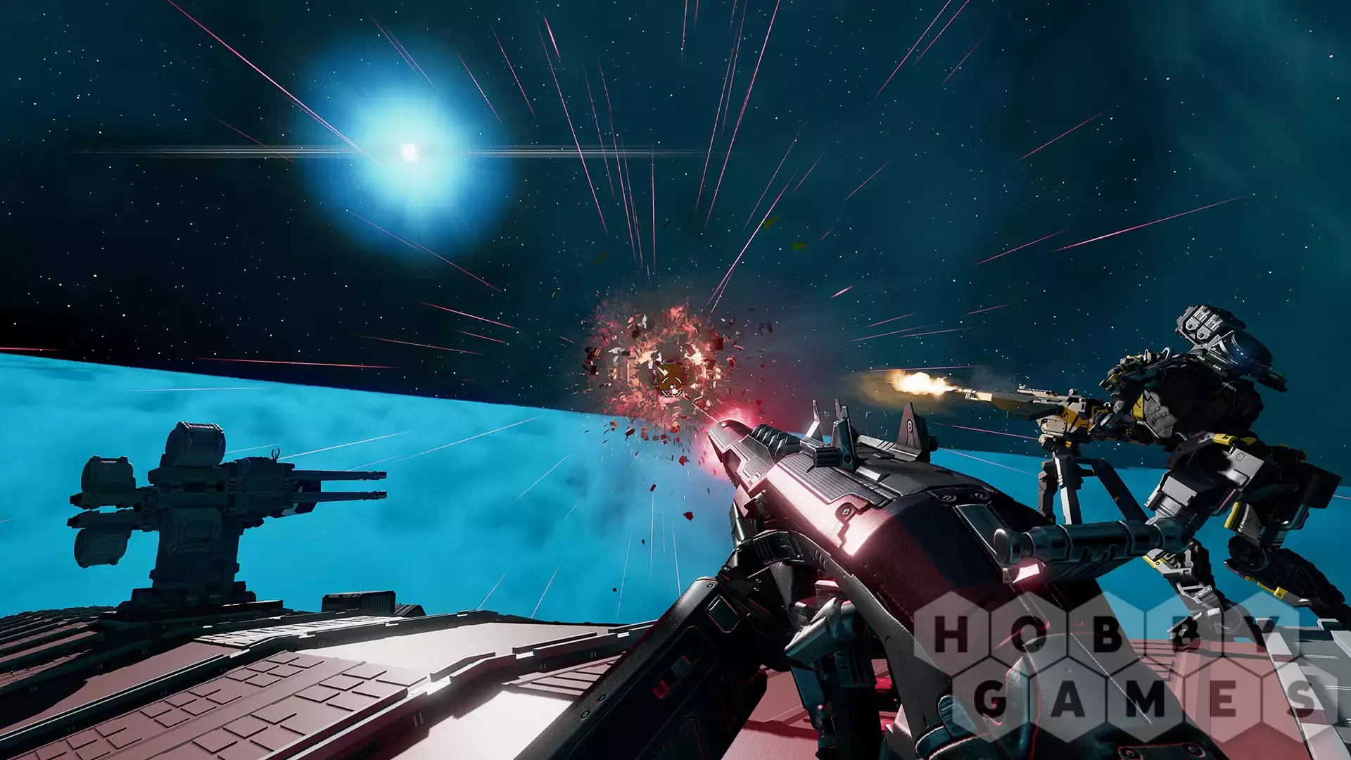 - Участвуйте в космических сражениях и схватках от первого лица вместе с тысячами других игроков.