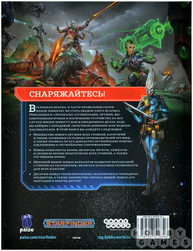 С помощью книги "Арсенал", предназначенной для использования вместе с основной книгой правил настольной ролевой игры Starfinder, ваш отряд сможет вооружиться по последнему слову техники. Да что там... Ещё круче! Ещё смертоноснее! Представленные в книге оружие, аугментации и различные магические и высокотехнологические устройства станут вашими верными помощниками и в каждодневных делах, и в самых непростых ситуациях. В "Арсенале" вы найдёте: