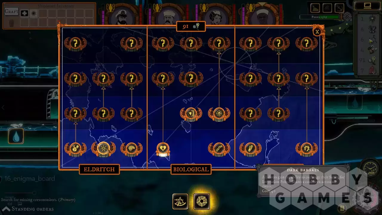 Судьба экспедиции зависит от сильных сторон её участников. В вашем распоряжении широкий выбор навыков и черт персонажа, все из которых открывают новые грани в битвах и сюжетных событиях. По мере продвижения вглубь вы также можете подвергнуть экипаж мутациям, дающим силы, но жутким. Цена выживания высока, и никто не покинет пучины прежним.