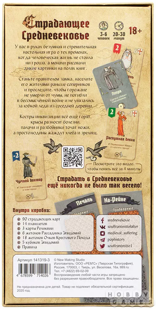 Кирилл12.07.2023 04:56Игра забавная, меня как любителя тематики средних веков затянула, особенно атмосферы добавляет то, что все персонажи взяты из реальных средневековых миниатюр картин и моргеналий. Правила простые, единственное, что может оттолкнуть это "обязательность" дополнения "Омерзительное средневековье" без него игра не ощущается полной. А так всем советую, покупайте сразу со всеми домами.