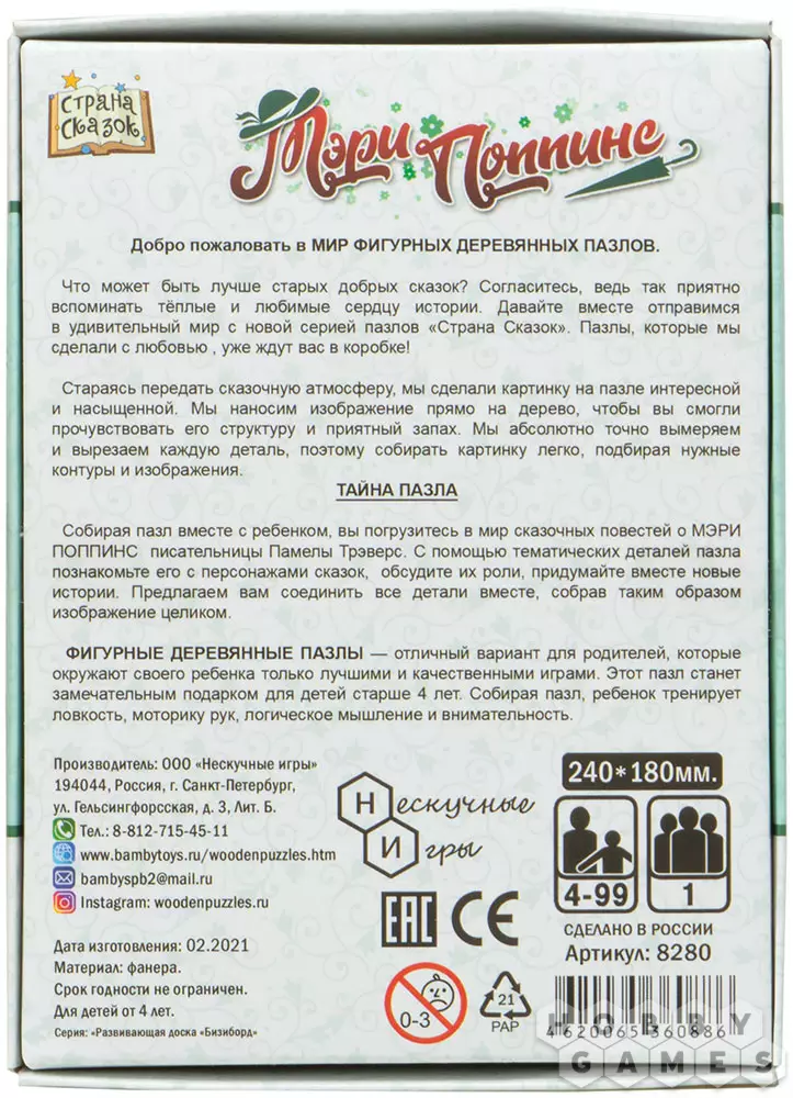 Вопросы про Фигурный деревянный пазл "Страна сказок: Мэри Поппинс"