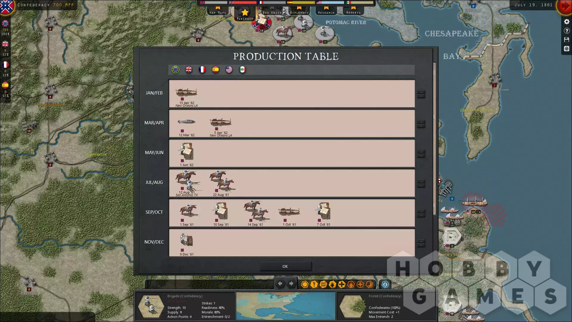 Поскольку в начале 1861 года профессиональных солдат, готовых к бою, было немного, создание армии будет не менее важным, чем приказ о вступлении в бой. Тысячи добровольцев записываются в армию, и вам нужно будет организовать их в бригады, дивизии и, в конечном итоге, корпуса. Необходимо будет провести исследования, чтобы улучшить их вооружение и боевые навыки.