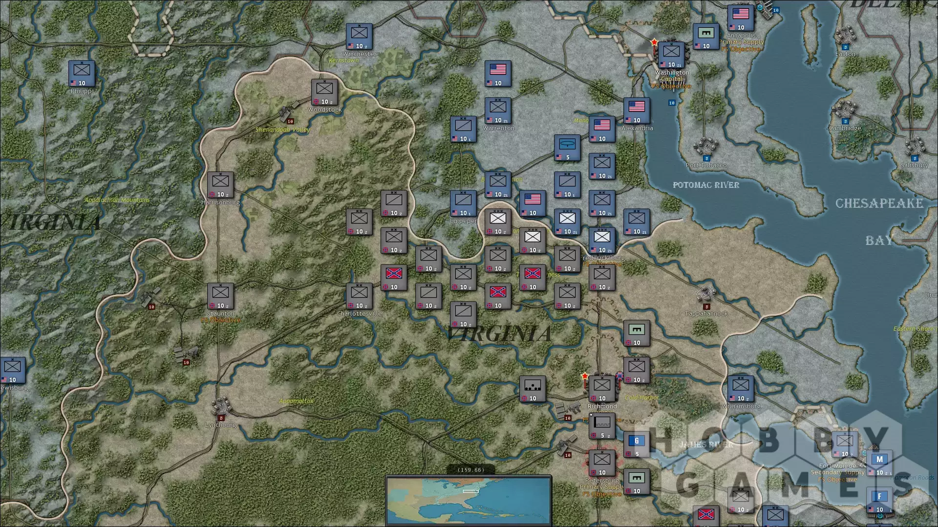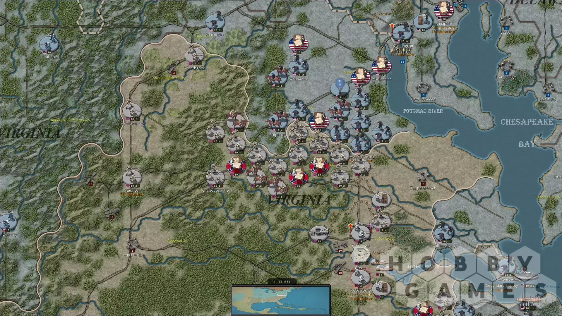 Strategic Command: American Civil War поставляется с массивной картой в 66 000 гексов, охватывающей всю Северную Америку от Канады и Нью-Мексико до Карибского бассейна в масштабе 15 км/9 миль. Это самая большая гексагональная карта из когда-либо предлагавшихся в серии Strategic Command!
