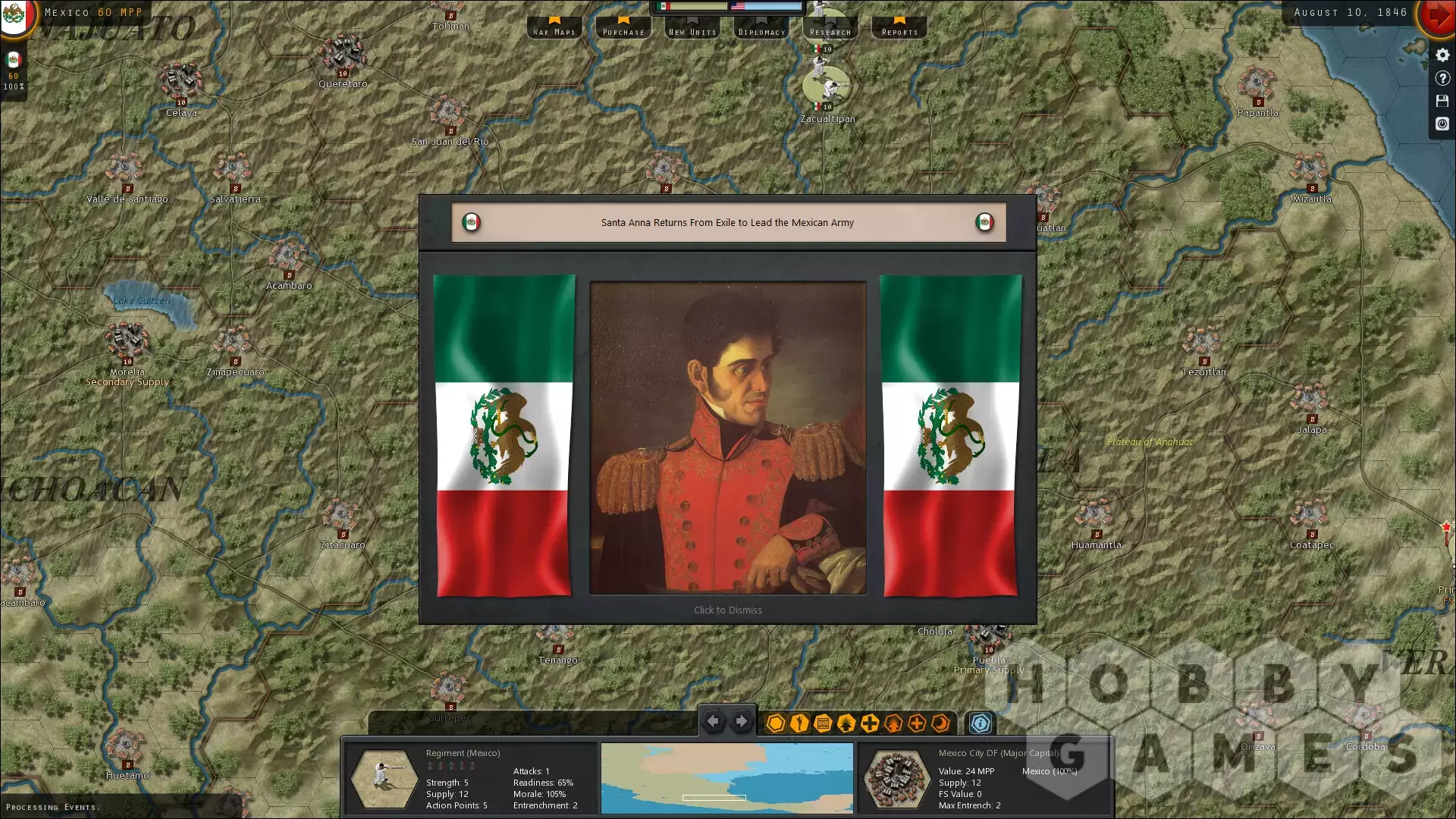 Начавшаяся в 1846 году Мексикано-американская война стала кульминацией идеи Manifest Destiny, мечты о расширении границ Америки от моря до сияющего моря. Это была война, которая стала свидетелем возвращения и падения Санта-Анны, маршей длиной в тысячи миль, когда Соединенные Штаты стремились контролировать Калифорнию, и мирного договора, который поставил Америку на грань гражданской войны. Как Мексика, сможете ли вы защитить свою огромную страну от американских вторжений? Как Соединенные Штаты, пройдете ли вы по маршруту конкистадоров, вплоть до залов Монтесумы?