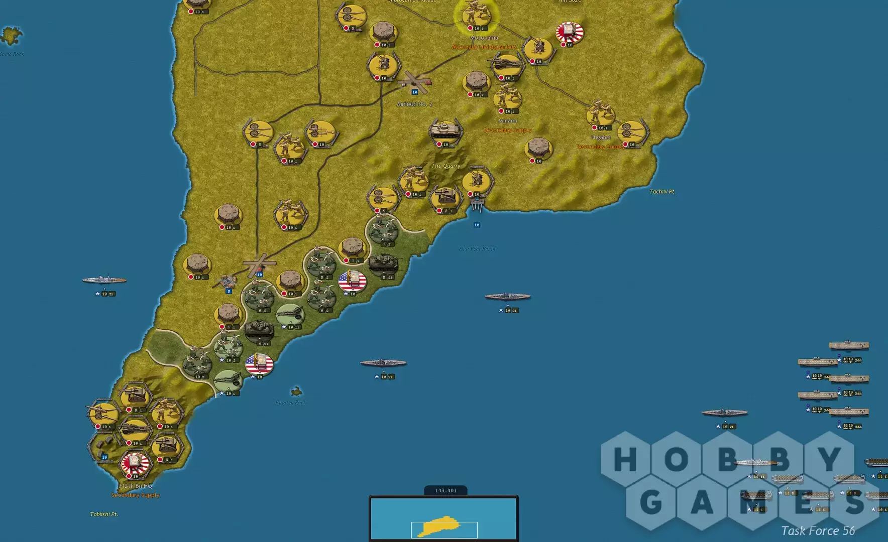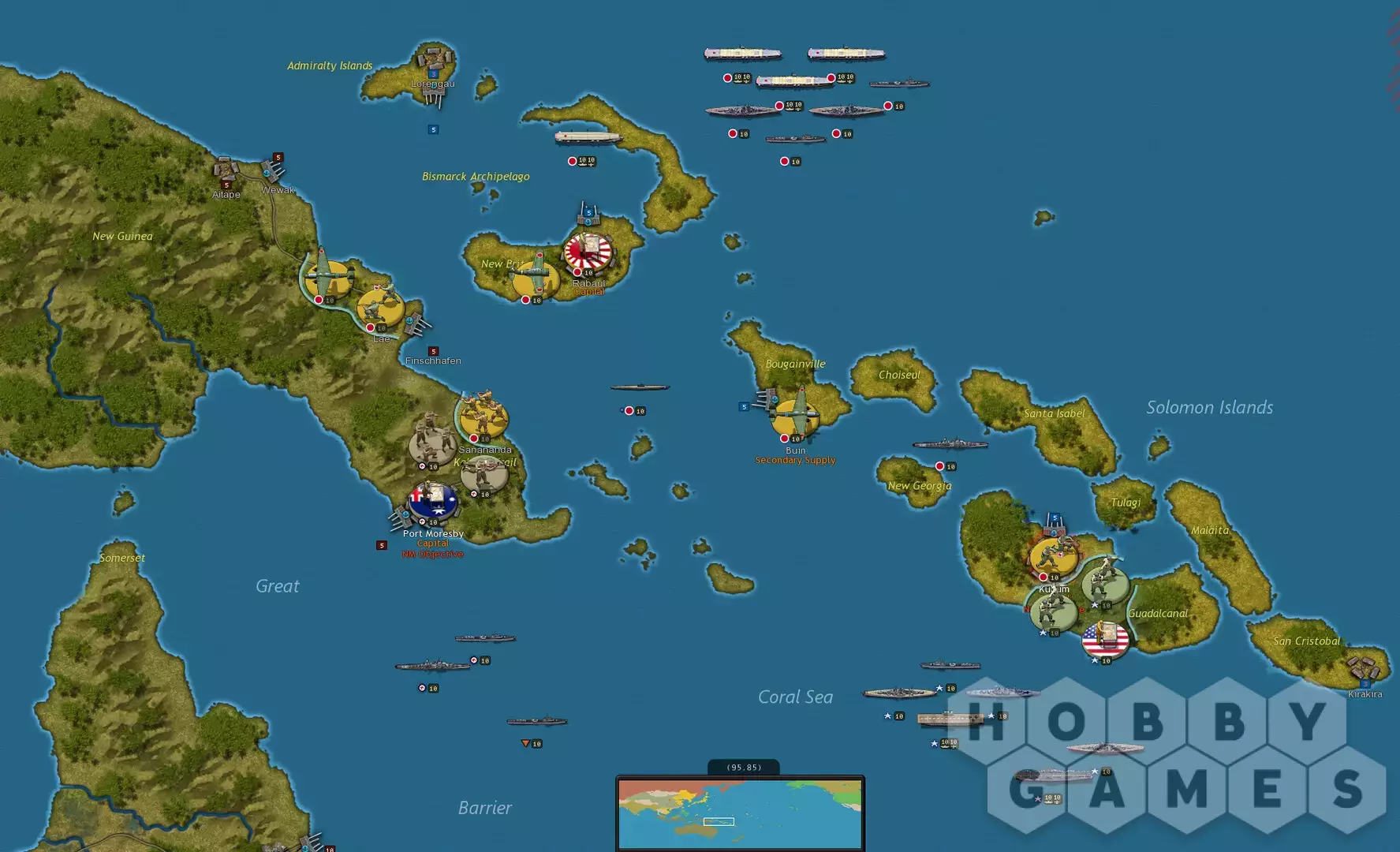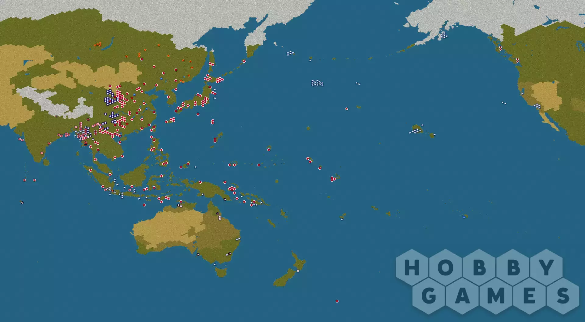 Strategic Command WWII: «Война на Тихом океане» и её флагманская кампания «День позора 1941 года» включают впечатляющую карту из 36 000 гексагонов, предоставляющую вам возможность вести войну от Индии и Бирмы на западе, через Голландскую Ост-Индию, Малайю, Филиппины, Гуадалканал, Кокодскую тропу, Иводзиму, Тараву и Мидуэй до западного побережья Северной Америки, в масштабе примерно 80 км/50 миль.
