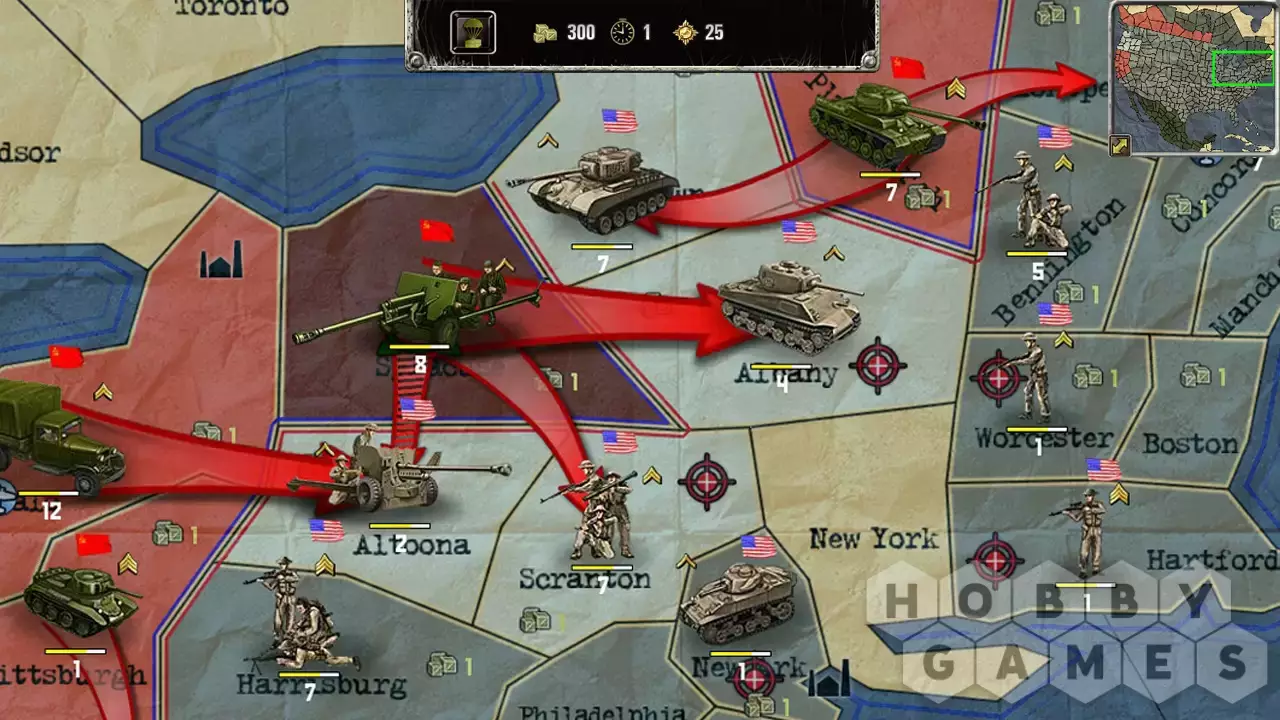 - 2 альтернативно-исторических кампании: возможность взглянуть на Третью Мировую глазами противоборствующих сторон — СССР и США, а также их союзников — коммунистического Китая и Канады; • 6 сценарных карт: перекраивайте границы в Европе и Америке, сражайтесь с гитлеровскими фанатиками среди ледяных пустошей Антарктиды!