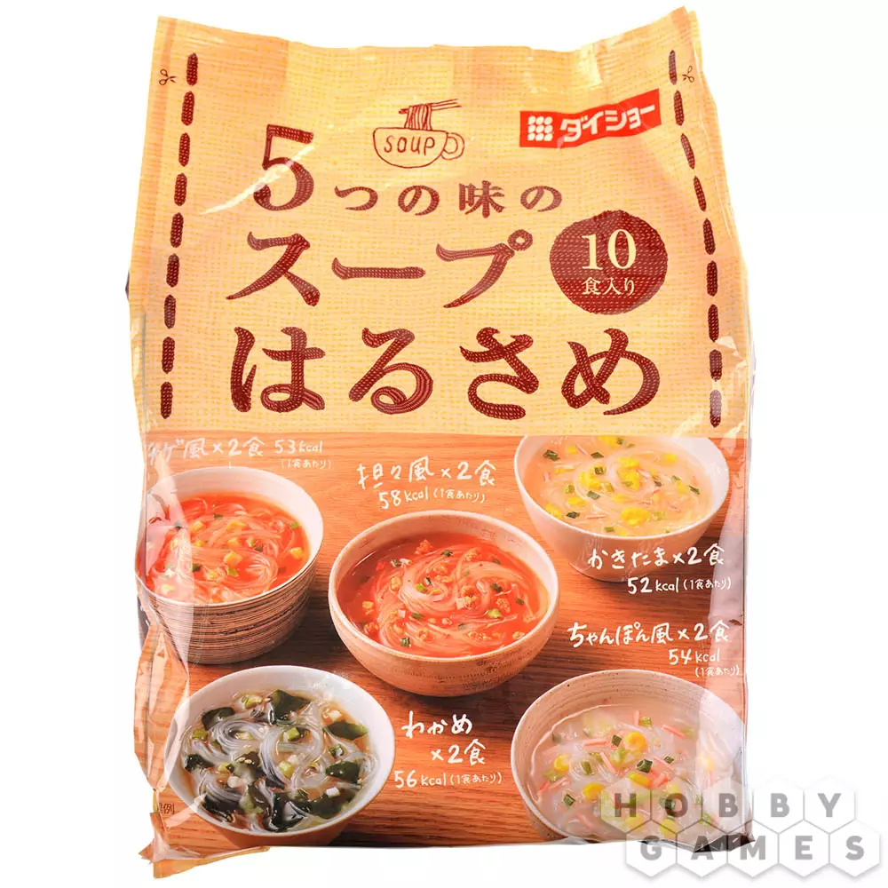 Цените вкусную, разнообразную и полезную пищу, но нет времени на готовку? Суп Daisho идеально вам подойдёт! Блюдо придётся по вкусу любителям азиатской кухни, оно идеально сочетает в себе мелко нарезанную лапшичку и другие ингридиенты. Особенность супа в его необычном богатом вкусе и пряном насыщенном аромате! Вдобавок на каждой упаковке указано точное количество калорий, не достигающее 60. Всего в пачке 10 порций и 5 разных видов лапши. Откройте упаковку, заливайте кипятком и сытный обед готов!